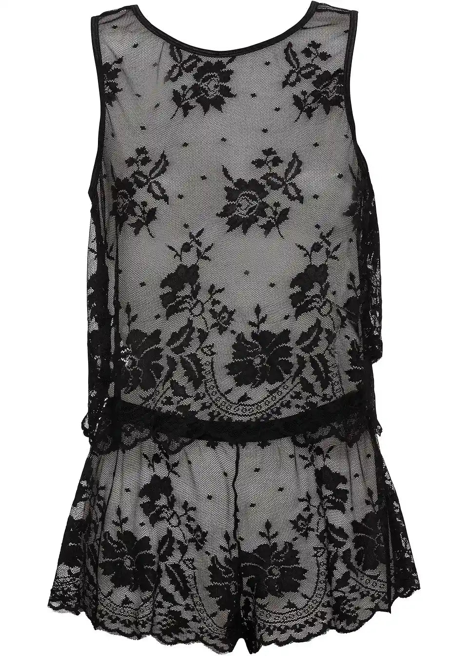 Kombinacija čiste elegancije i zavodljivosti! Ovaj 2-dijelni set koji uključuje top i kratke hlače očarava svojom finom cvjetnom čipkom koja nježno prati vaše obline te ih savršeno ističe zahvaljujući prozirnosti. Poseban detalj je duboki izrez na leđima, kojim ćete oduševiti svog partnera. Elegantni kroj i udobno pristajanje čine ovaj set savršenim za svaku priliku.