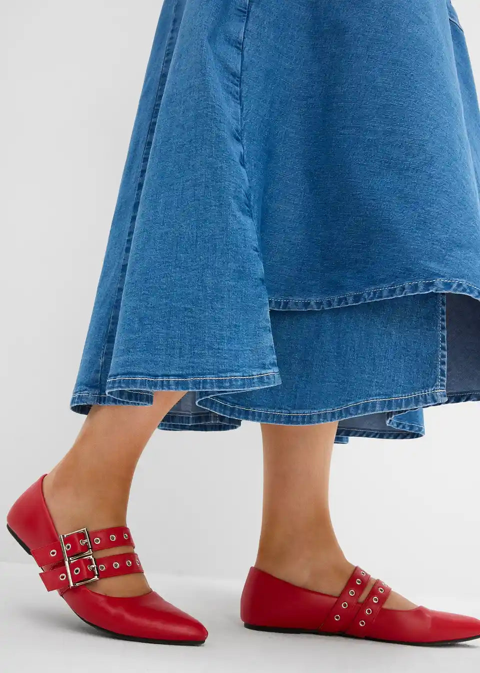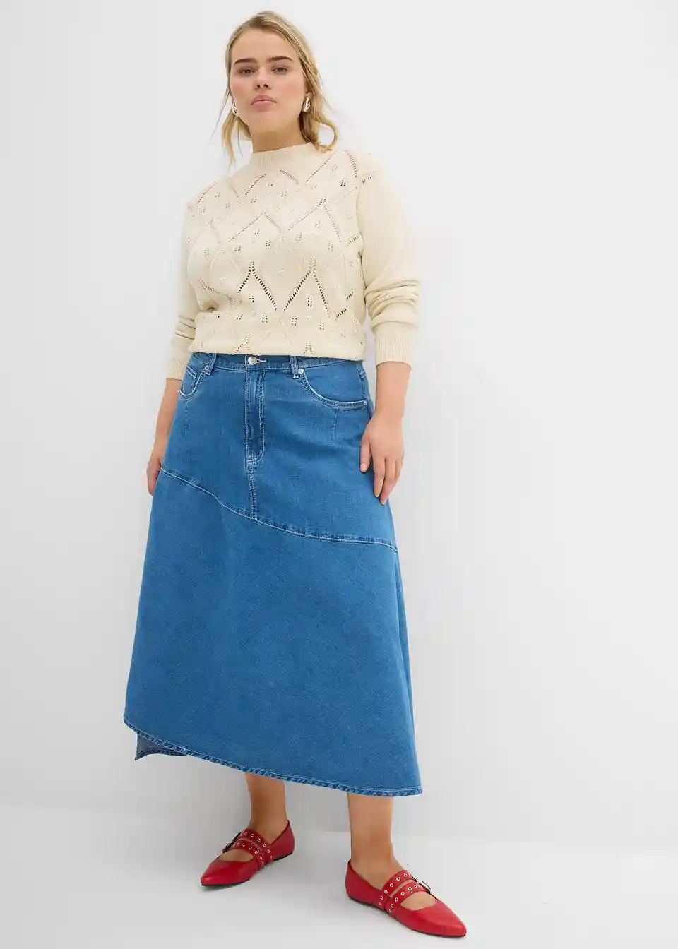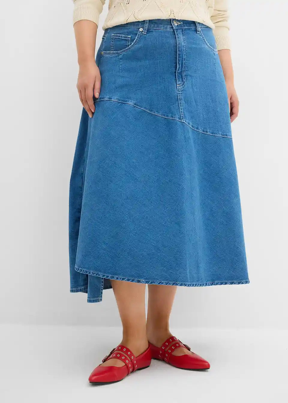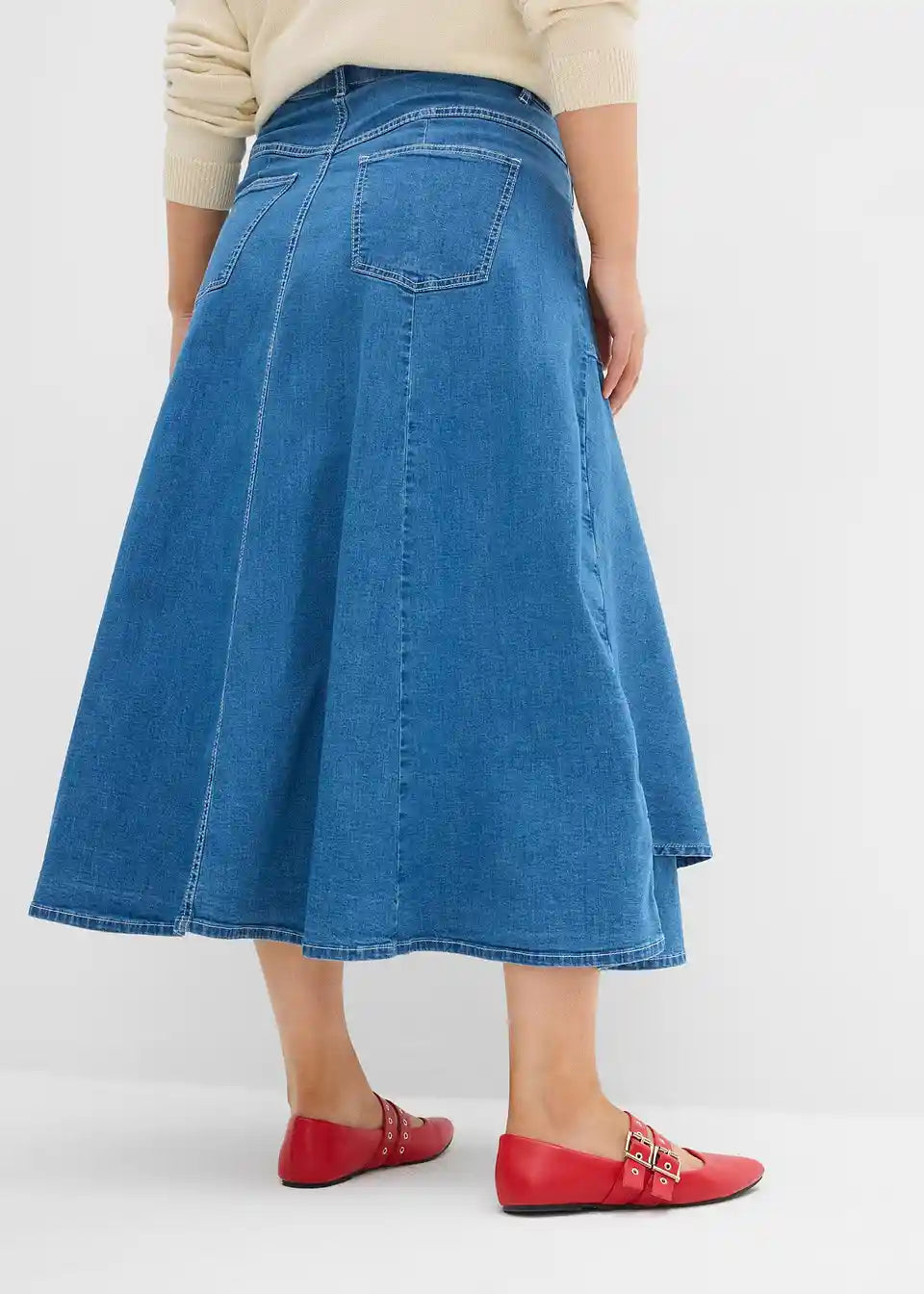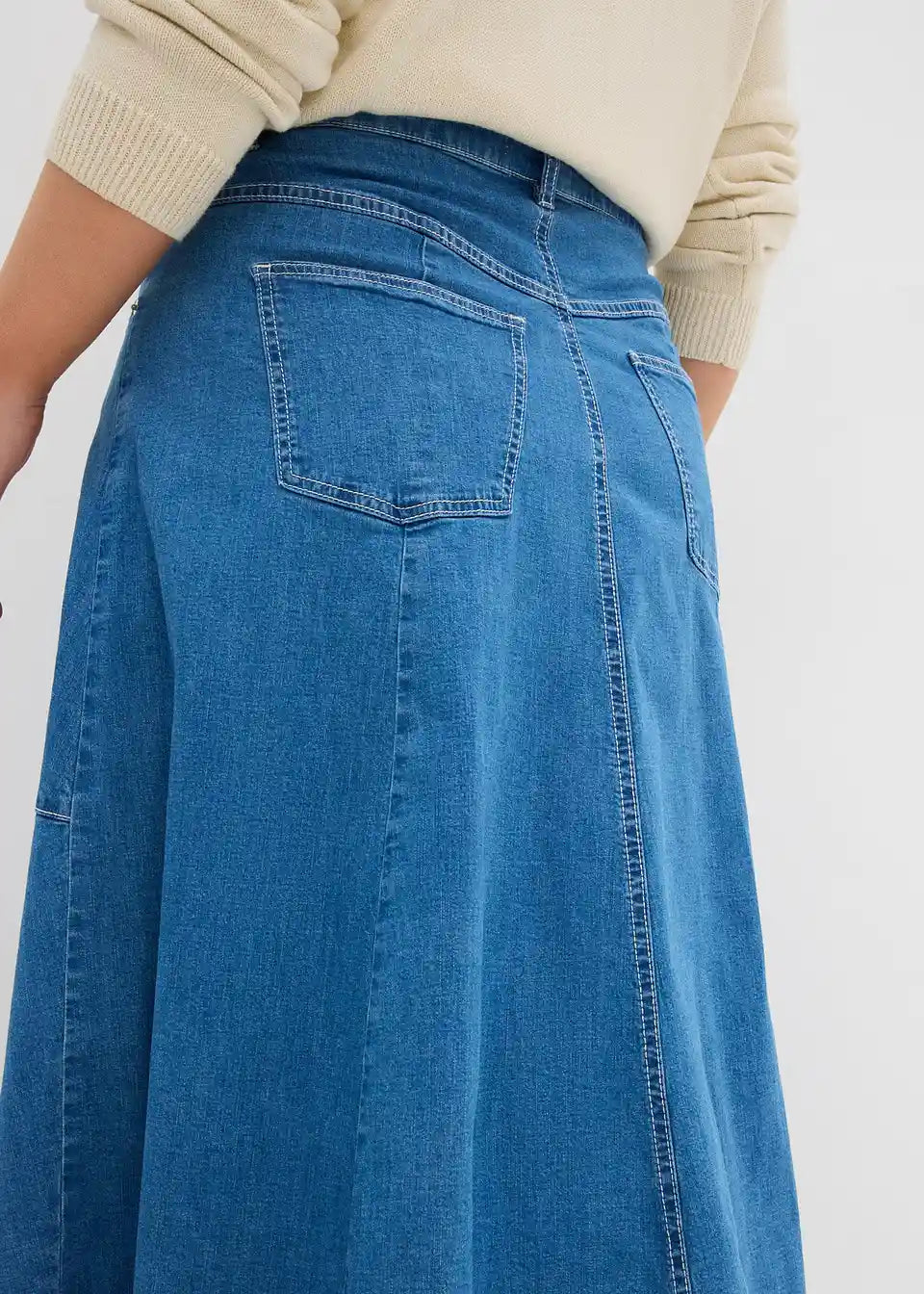 Suknja od trapera s visokim strukom midi dužine