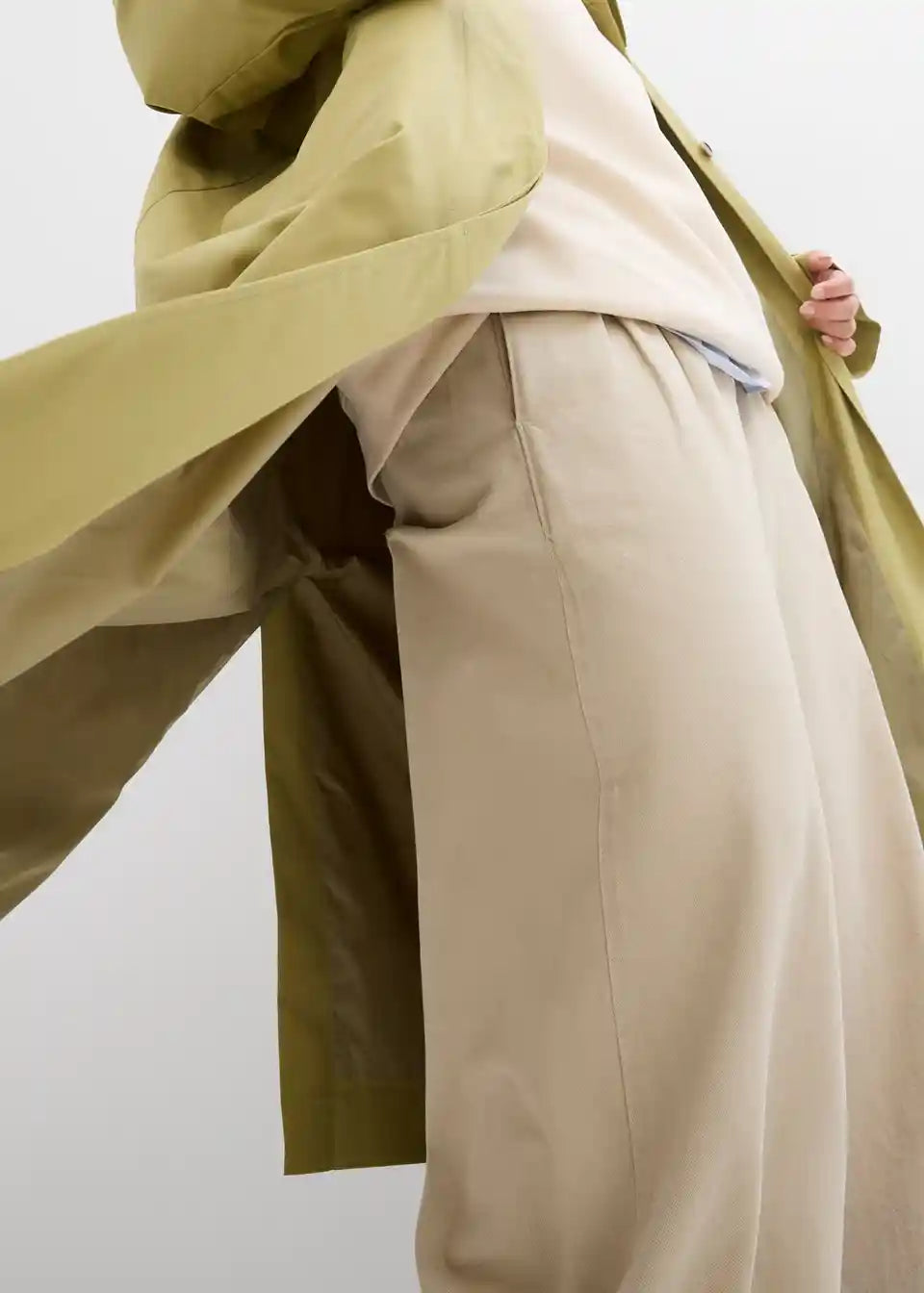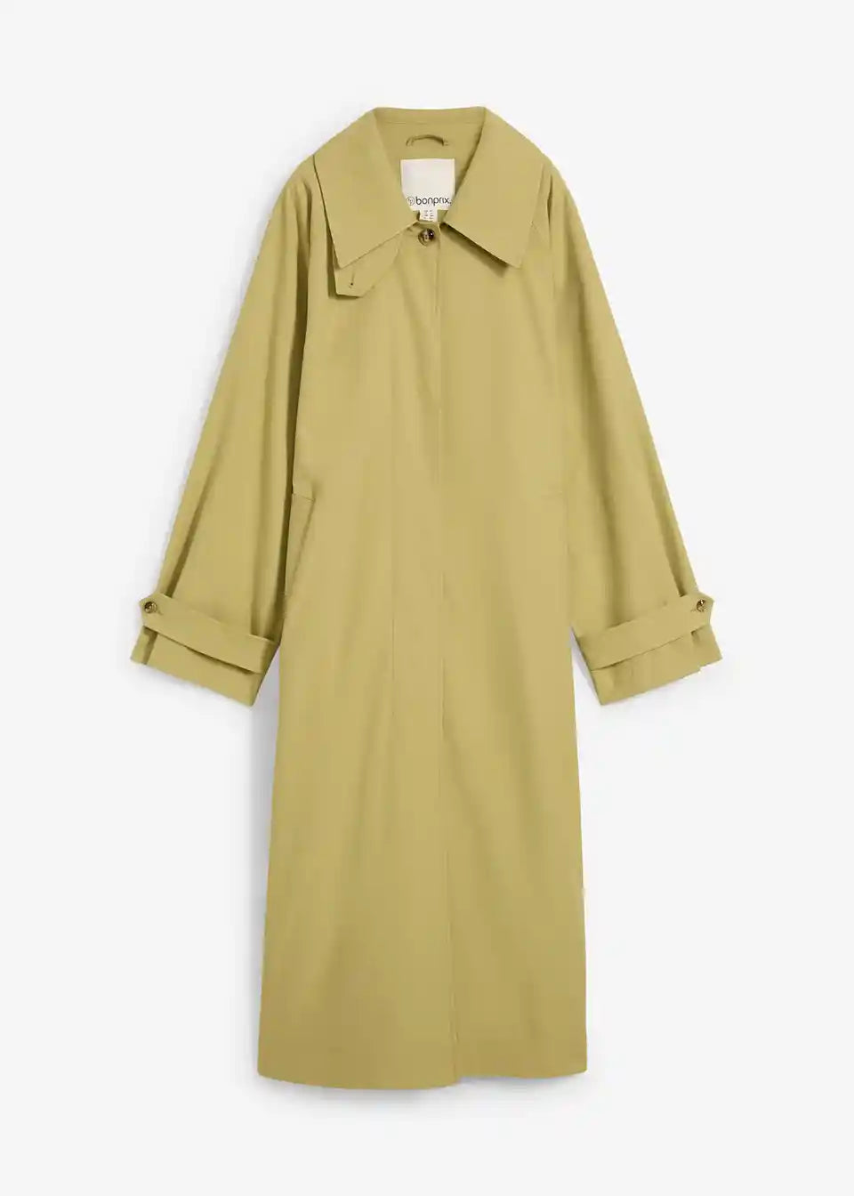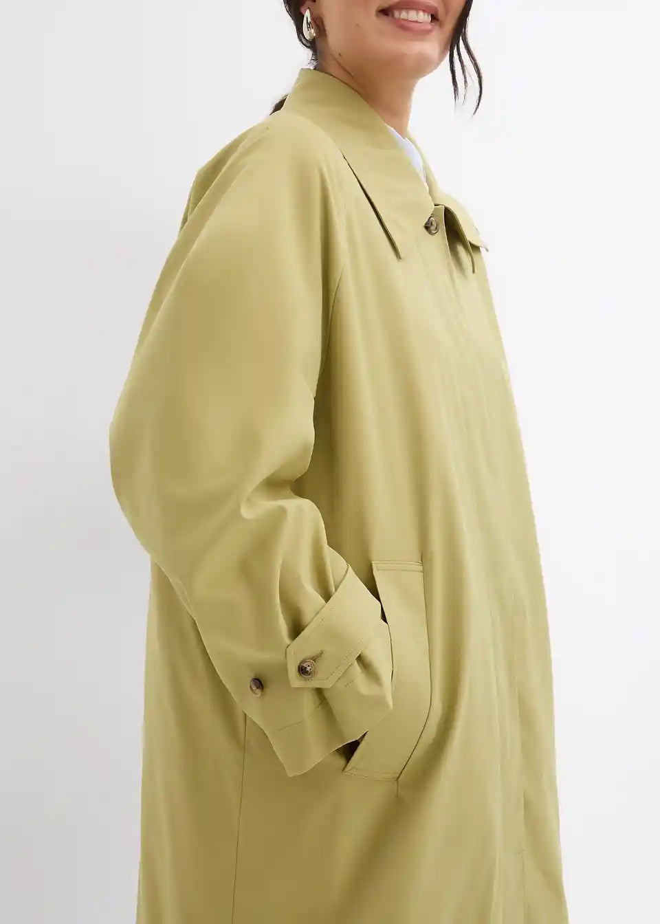Ležerno krojeni Trenchcoat s klasičnom siluetom, širokim podignutim ovratnikom i podesivim manžetama na rukavima