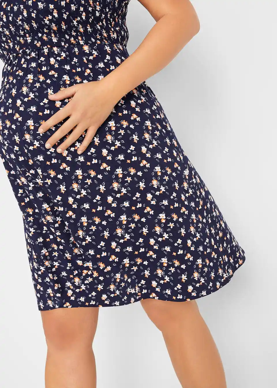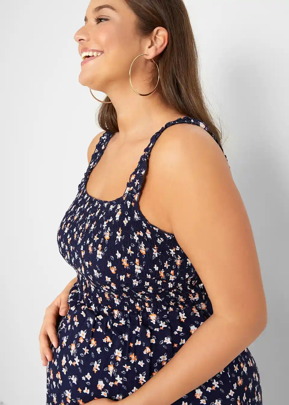 Ova trudnička haljina s cvjetnim printom je odličan ljetni izbor i zahvaljujući lepršavom materijalu od viskoze pogodna je za cijelu trudnoću. Naborani gornji dio osigurava dodatnu udobnost.