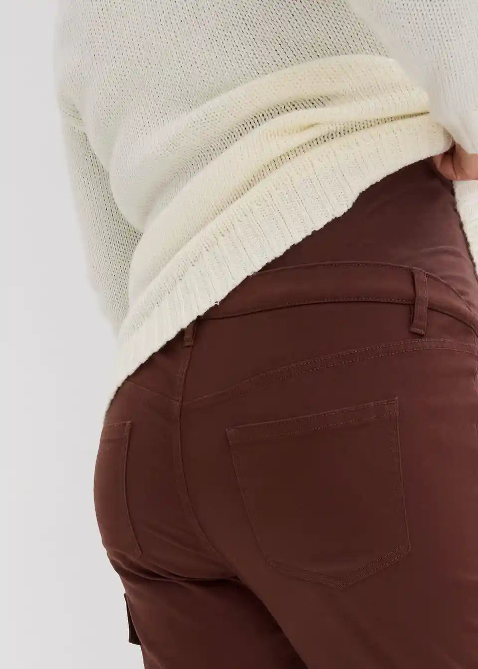 Cargo hlače od organskog pamuka s udjelom elastana za visok nivo udobnosti. Ugodan kroj s ravnim nogavicama. Široki, pričvršćeni jersey pojas osigurava optimalno prianjanje oko trbuha. Podesiva elastična traka u pojasu hlača omogućuje regulaciju širine, pa se hlače mogu prilagoditi svakom stupnju trudnoće.