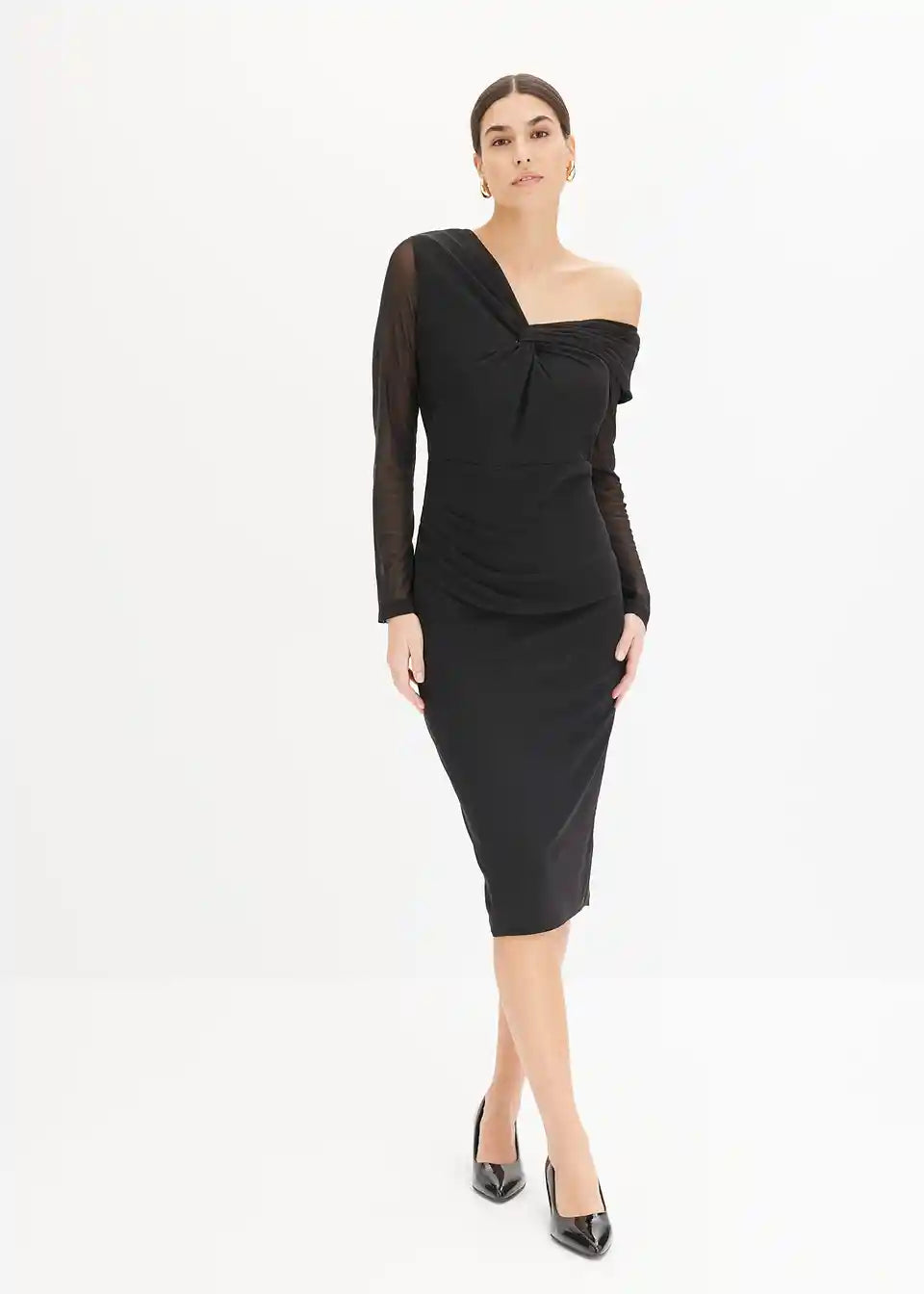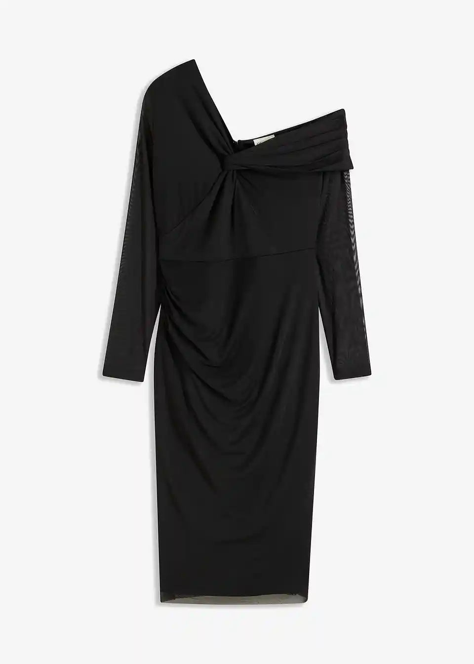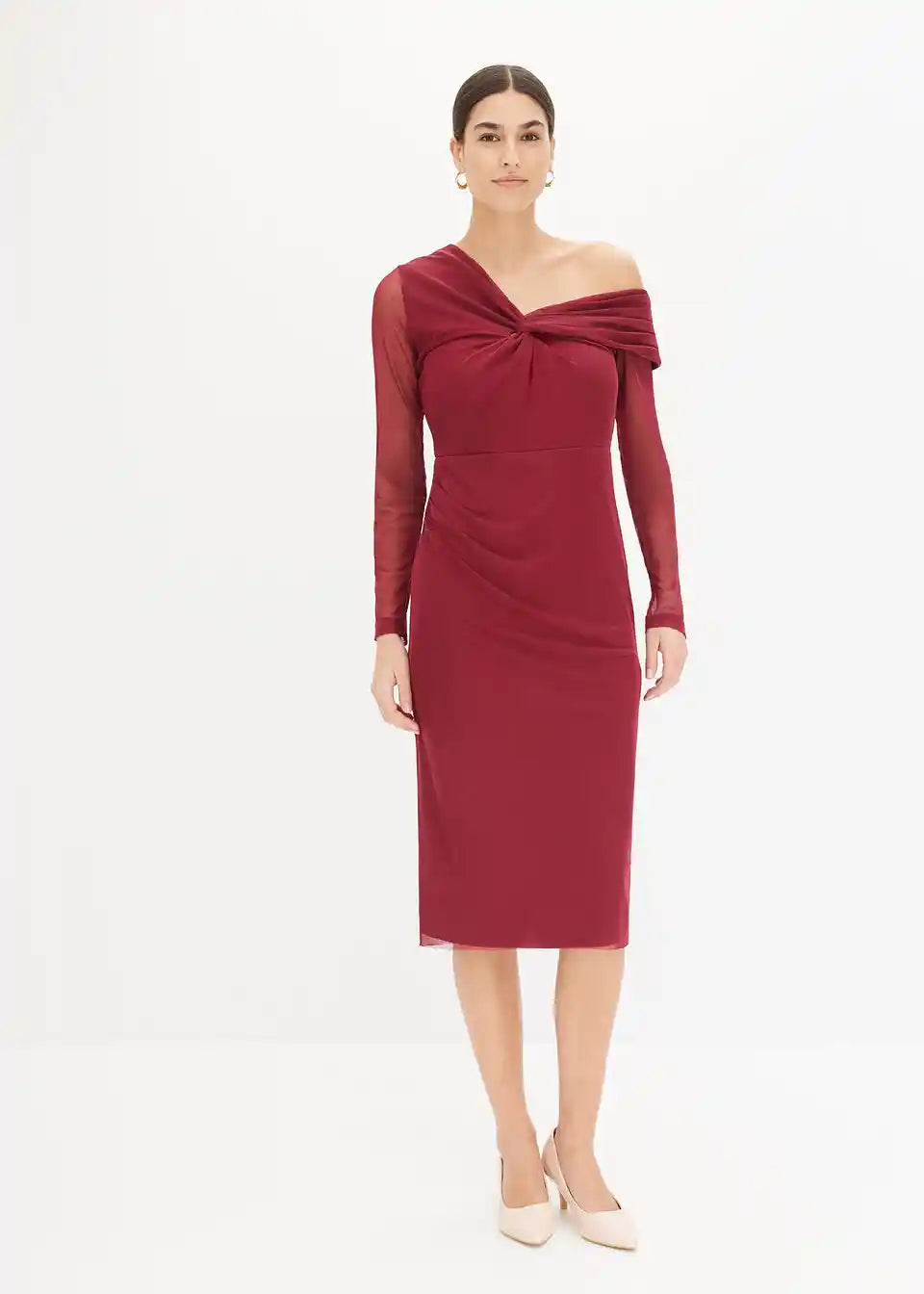 Moderna midi haljina s efektnim twist detaljem sprijeda