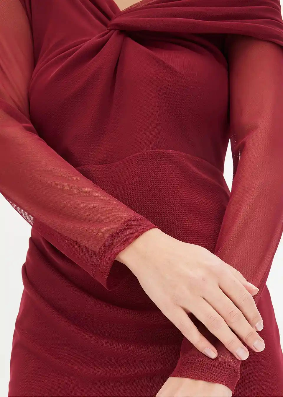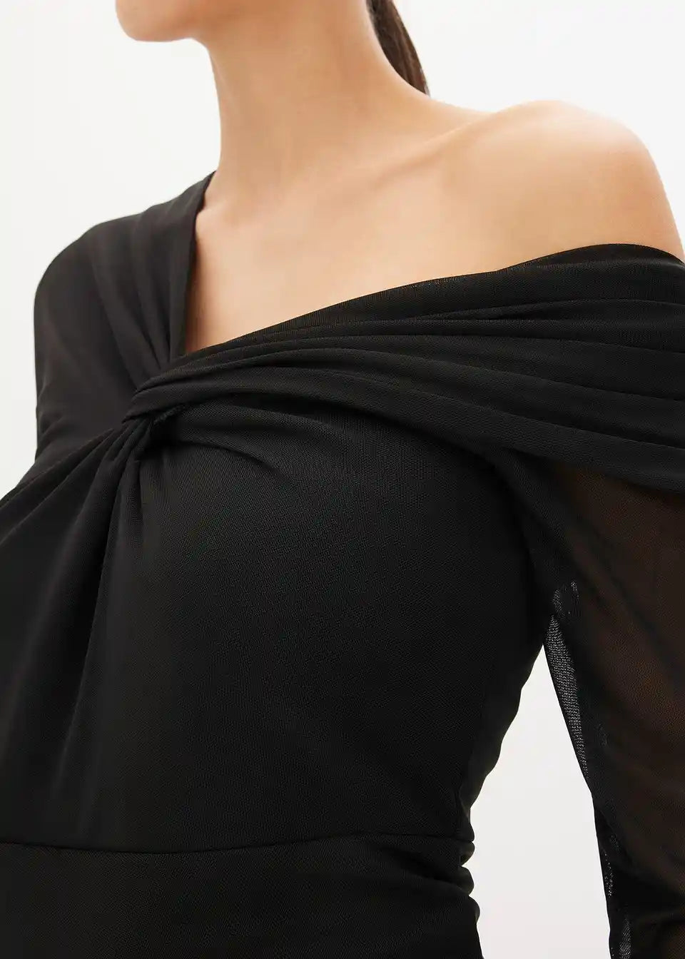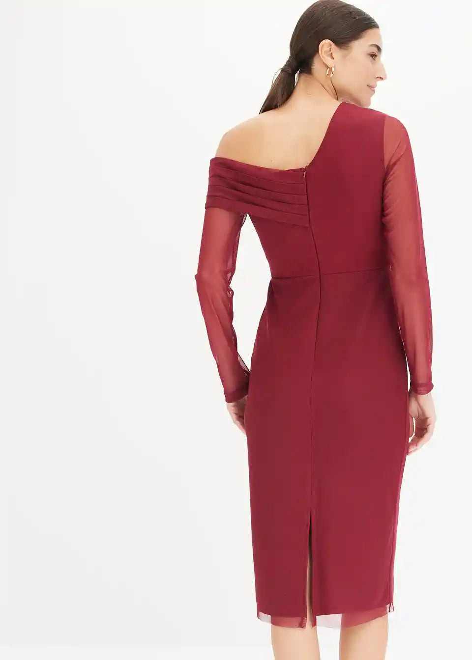 Moderna midi haljina s efektnim twist detaljem sprijeda