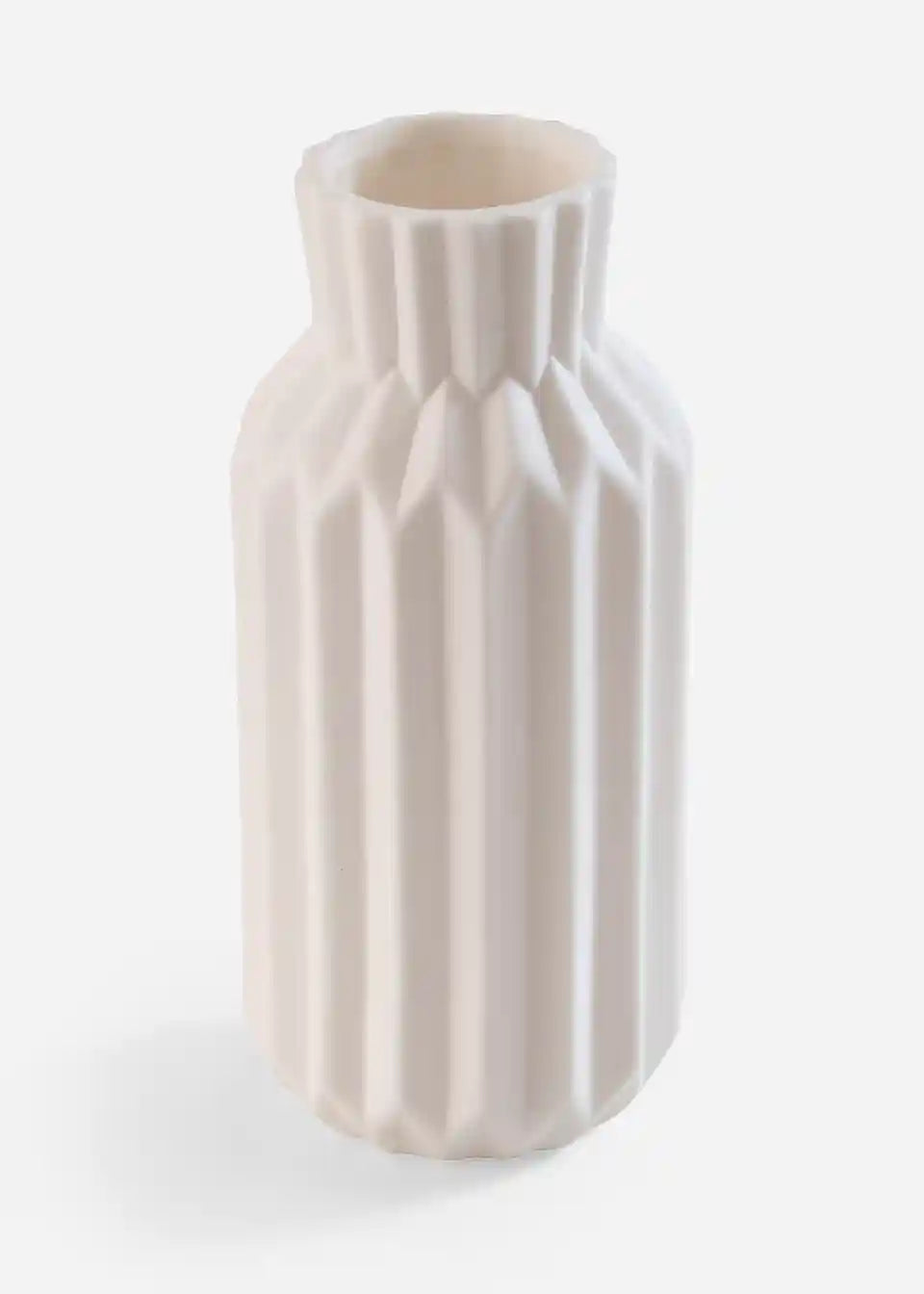 Dodajte svom stambenom prostoru moderan akcent s ovom jedinstvenom vazom. Privlačan, facetirani oblik i blistavo bijela površina stvaraju elegantnu estetiku koja je istovremeno bezvremenska i suvremena. Ova vaza savršena je za svježe cvijeće ili kao dekorativni element koji impresionira i bez sadržaja. Njezin minimalistički dizajn skladno se uklapa u različite stilove uređenja interijera i osigurava da postane središnja točka u svakom prostoru.