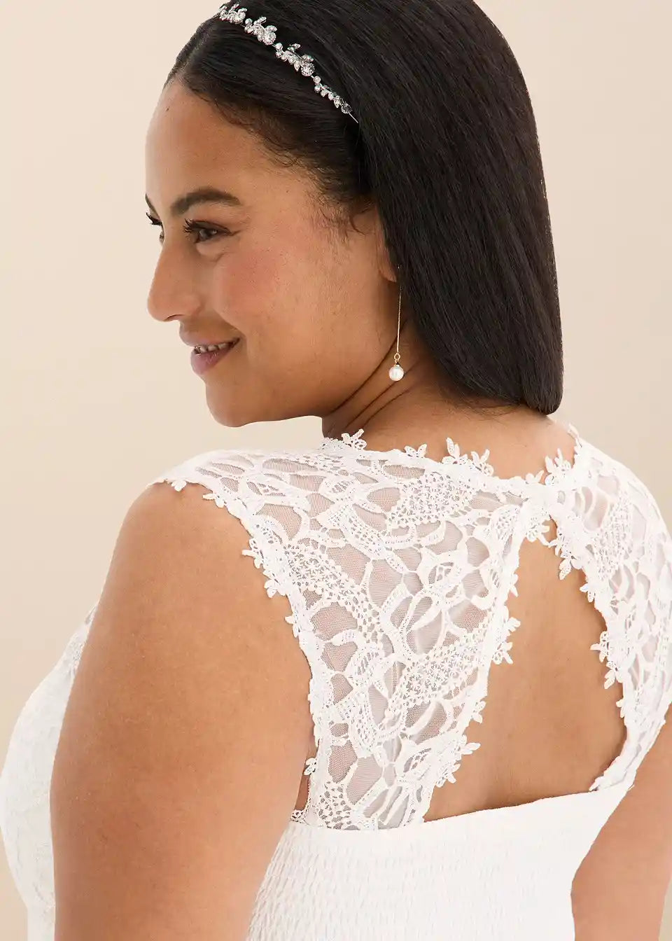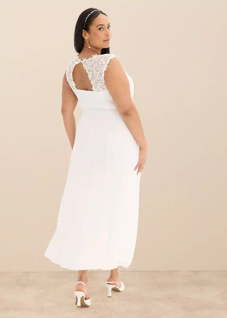Elegantna večernja haljina s prekrasnom čipkom u gornjem dijelu, straga s elegantnim otvorom i smock umetkom, duljina cca 138 cm (sve veličine), može se prati u perilici rublja,