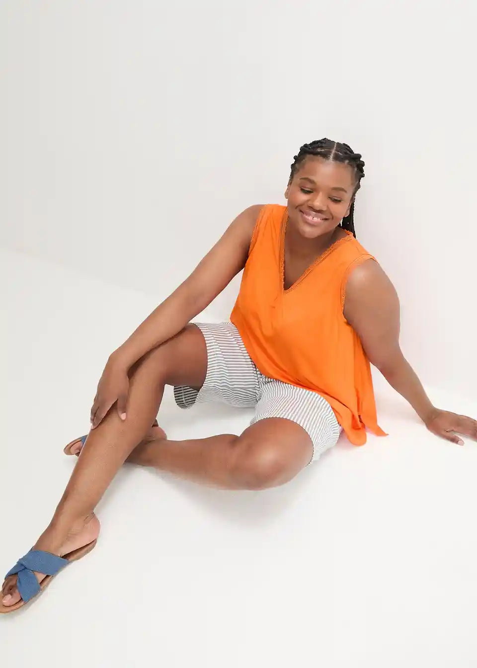 Značajka kroja:ističe dekolte, u dužini preko bokova, pruži komfor zbog raspora sa strane, pruži udobnost zbog stretcha, s V izrezom za vitak izgled, sakrije puniji trbuh, stražnjicu i šire bokove