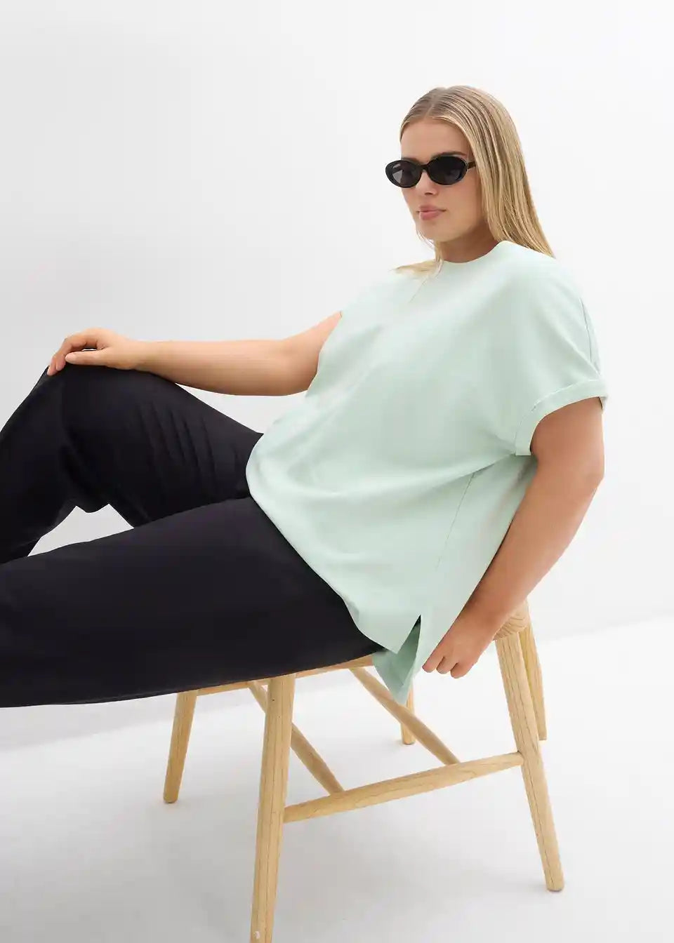 Vokuhila-shirt s bočnim prorezima i elegantno preklopljenim kimono rukavima