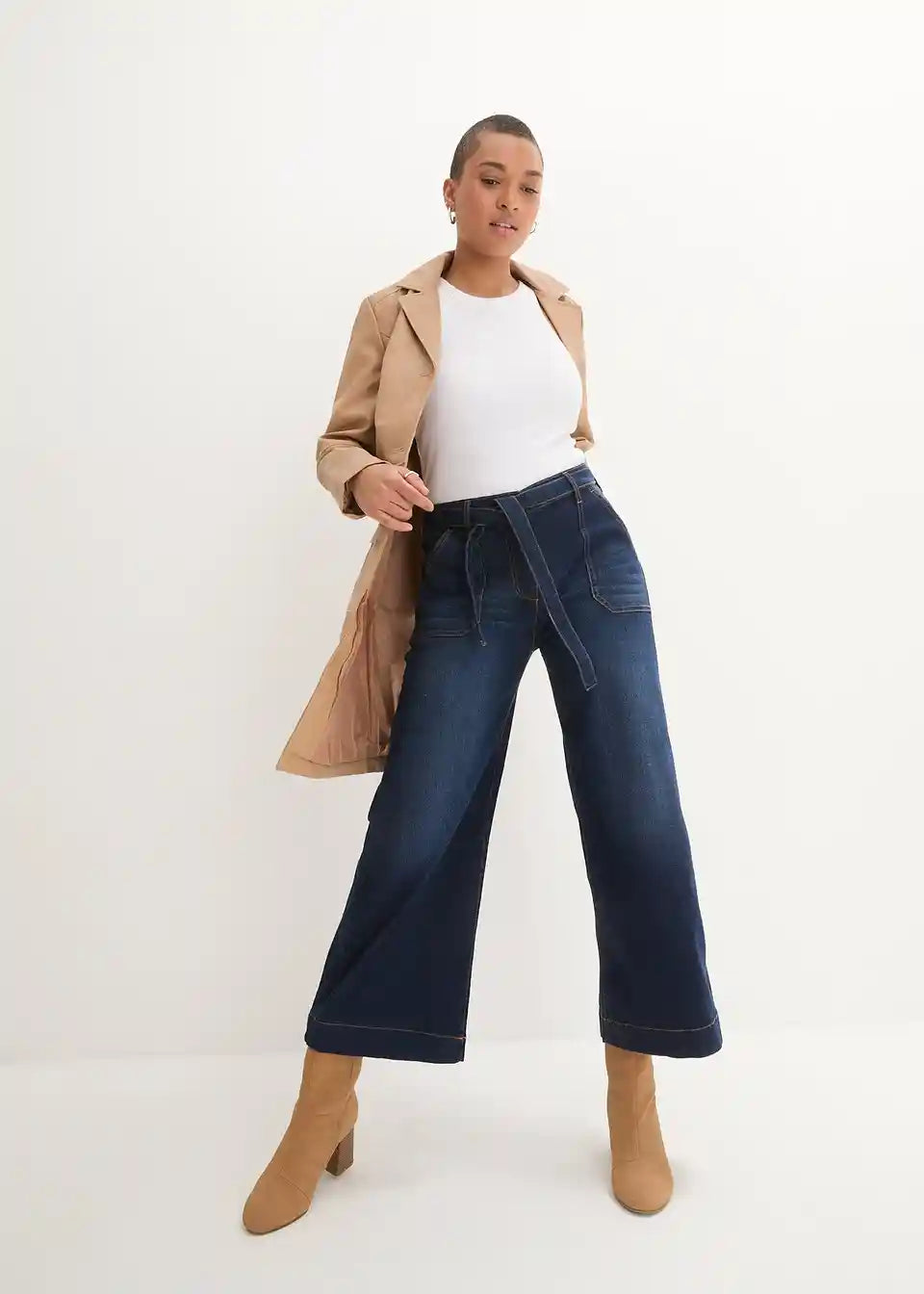 Posebni detalji čine "široke" 7/8 traperice marke bpc atraktivnima. U središtu pažnje je pojasna vrpca. Veliki našiveni prednji džepovi također upadaju u oči. Široki rub završava nogavicu. Lijepe rastezljive culotte traperice pružaju izvrstan komfor zahvaljujući bočnom elastičnom pojasu. Dopadljive 7/8 traperice ženstveno se kombiniraju s bluzom i balerinkama. Nešto ležerniji izgled postiže se s majicom na pruge i espadrilama.