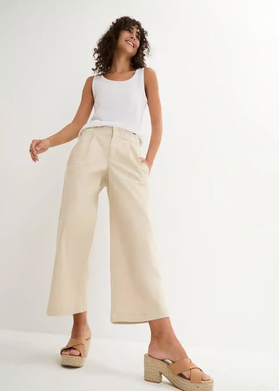 Moderne Twill-Culotte s Bequembund i naborima u struku