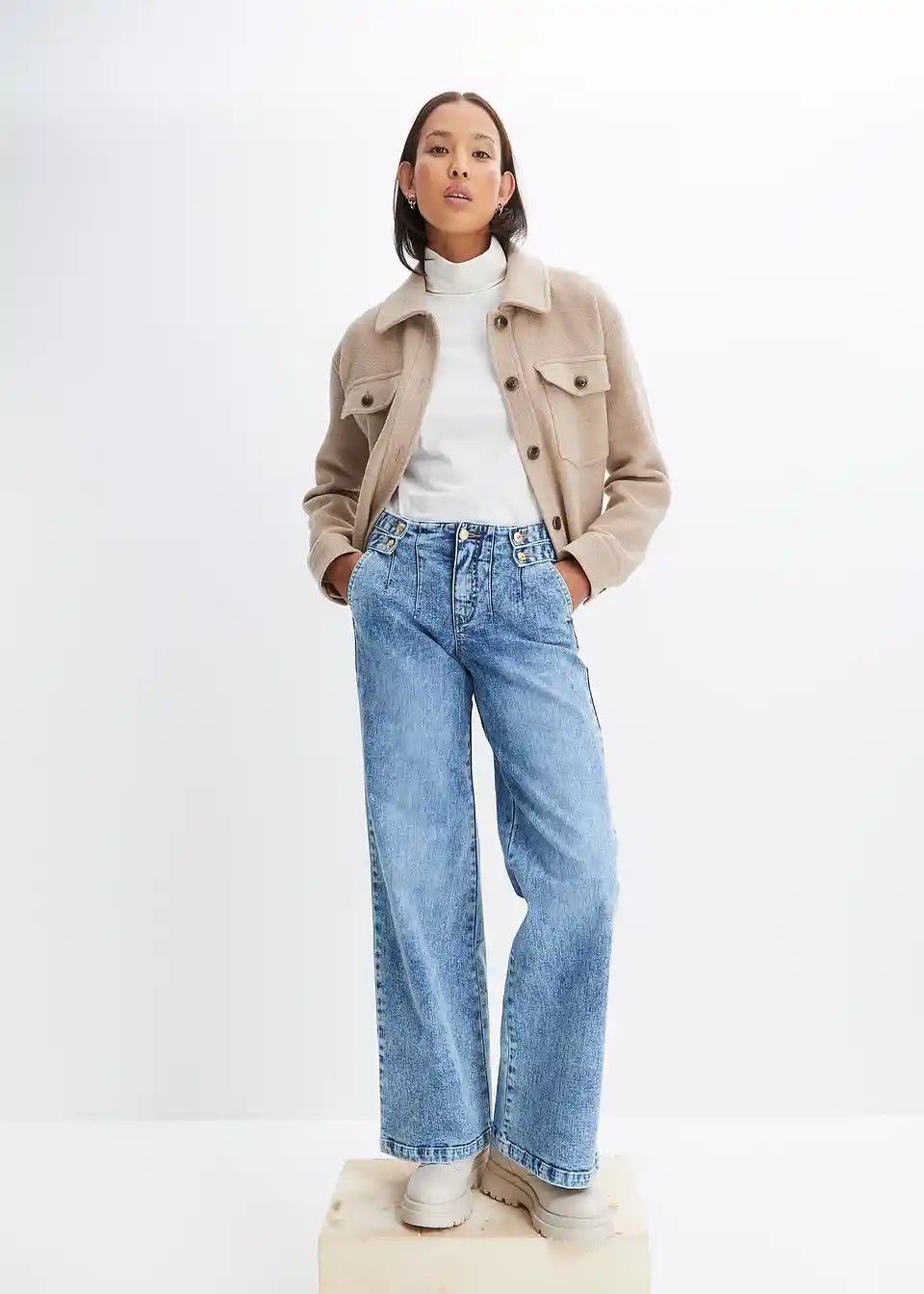 Trendovske Marlene traperice s ukrasnim gumbima i širokim nogavicama