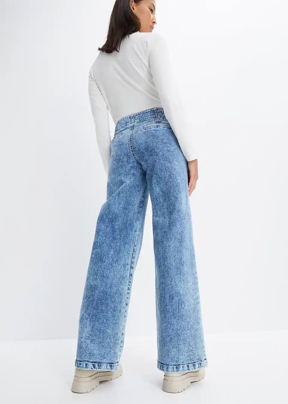 Traperice sa širokim nogavicama, srednje visokim strukom i ukrasnim gumbima