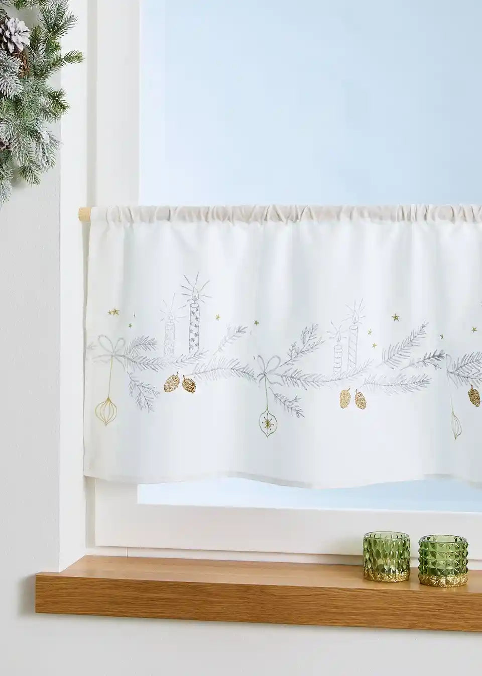Ova zavjesa za prozor diskretno pruža zaštitu od pogleda i idealna je dekoracija za božićno raspoloženje. Prekrasan vez s nitima sjaja i obrada u izgledu lana čine je posebnim dodatkom.