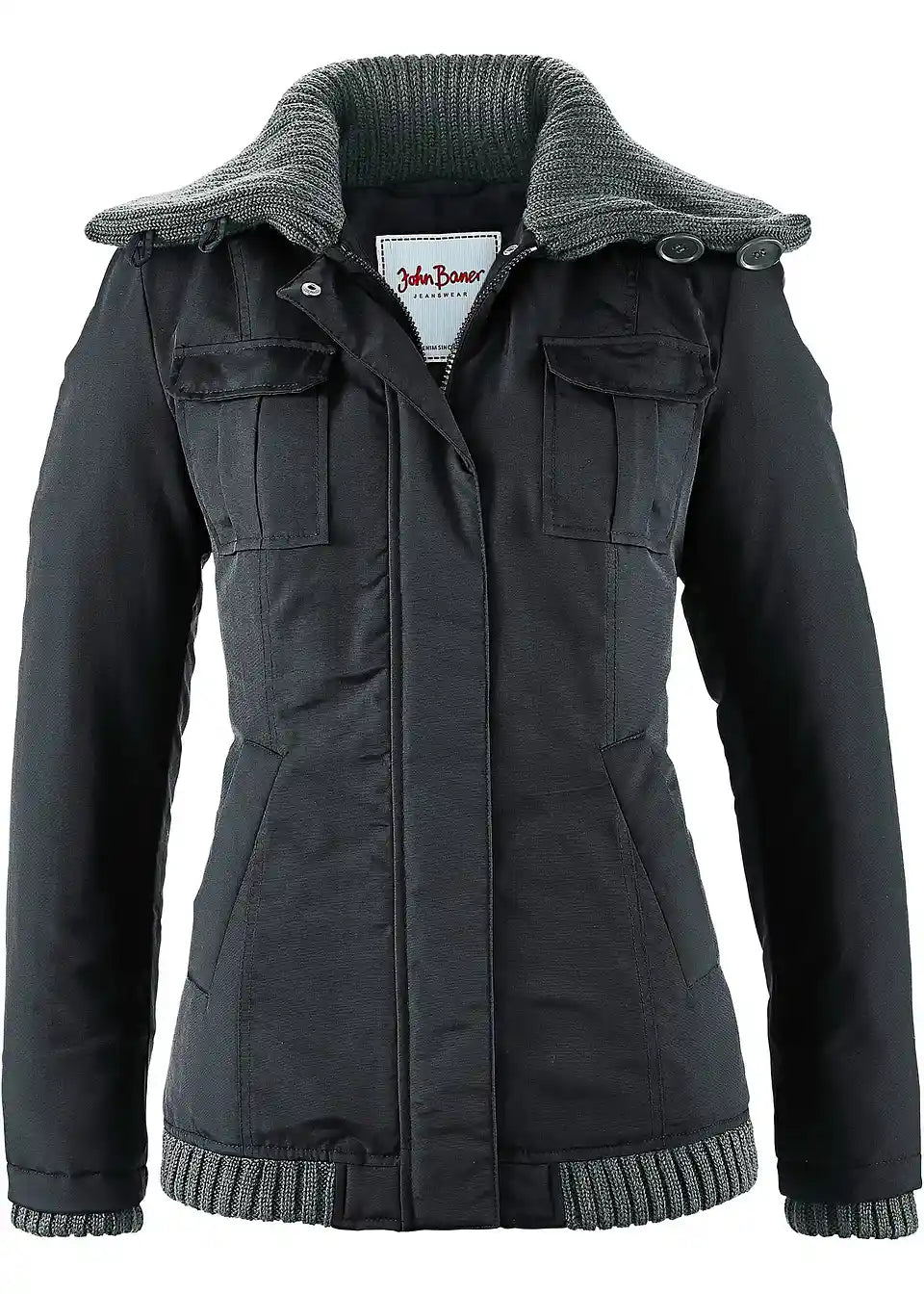 Toplo i trendi - to pruža ova cool zimska jakna iz trenutne kolekcije John Baner. Jakna krojena da istakne figuru ima četiri džepa na prednjoj strani: dva bočna kosa džepa i dva našivena džepa u visini grudi. S modernim pletenim detaljima na ovratniku, rukavima i pojasu, ova jakna je pravi privlačan dodatak.