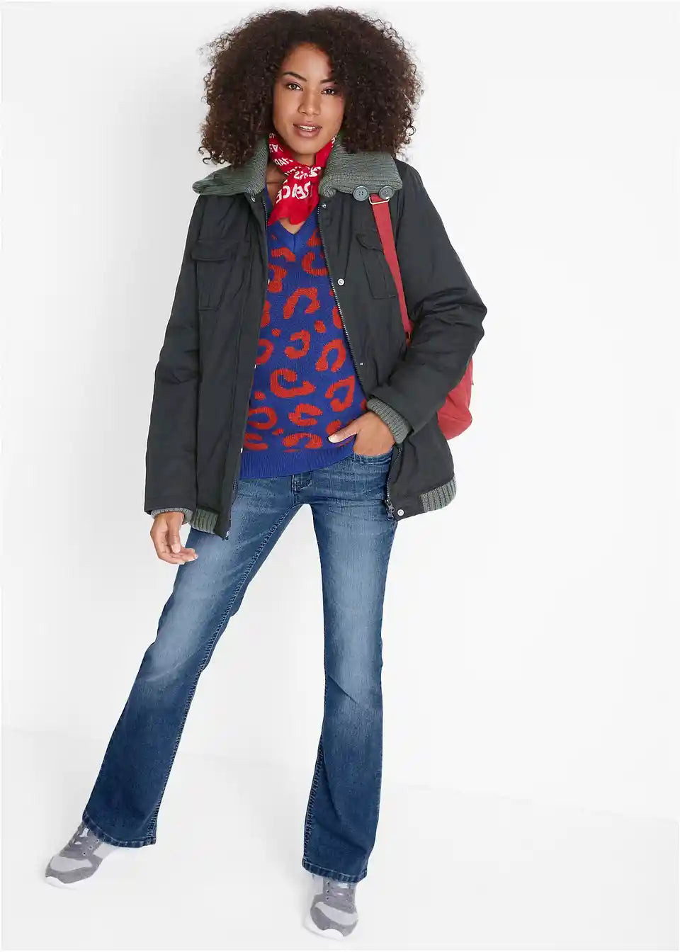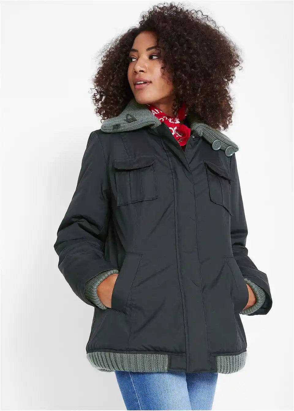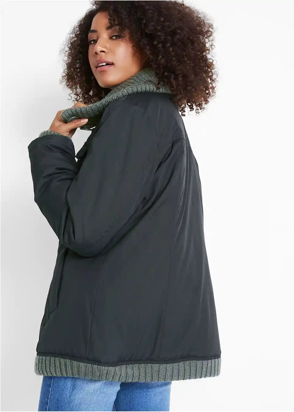 Topla podstavljena zimska jakna s modernim pletenim detaljima