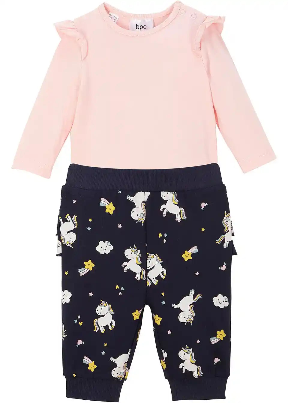 Bodi s dugim rukavima i hlače od organskog pamučnog trikoa za bebe
