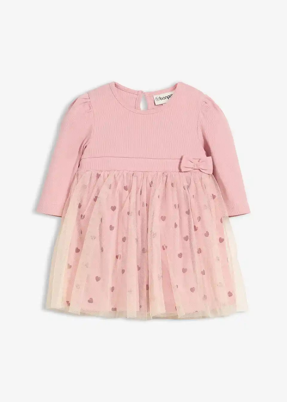 Slatka baby body haljina s dugim rukavima i sa srcastim uzorkom