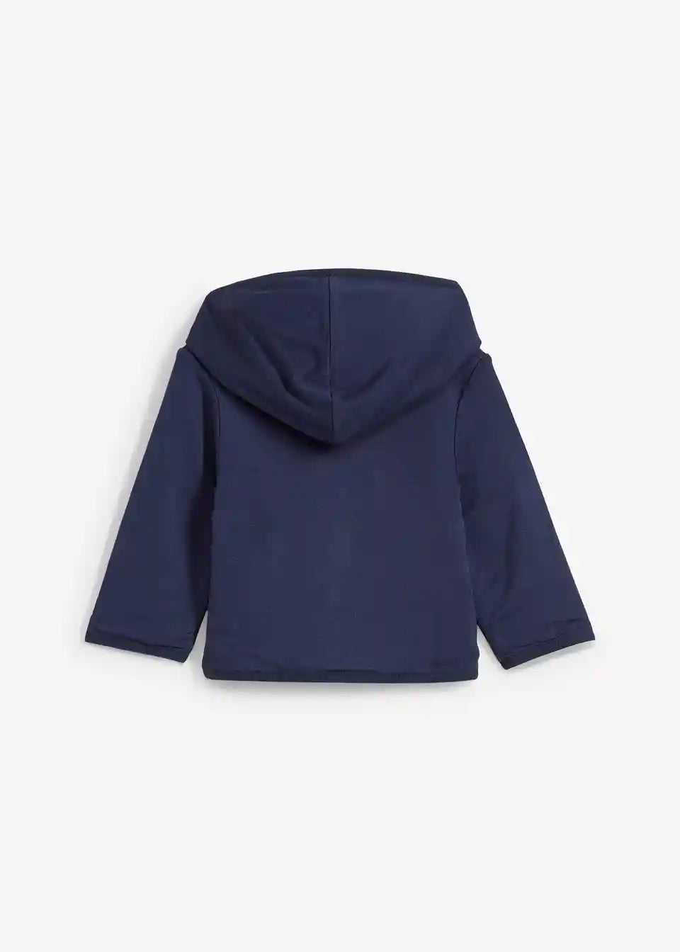 Udobna dječja reverzibilna Sweat jakna s kapuljačom izrađena od mekane mješavine viskoze – dva izgleda u jednom! Jedna strana jednobojna, druga prugasta, za raznolike odjevne kombinacije. Cijela prednja dugmad omogućava lako oblačenje i svlačenje, dok udoban kroj i mekana kapuljača pružaju dodatnu udobnost. Savršena za svaki dan.