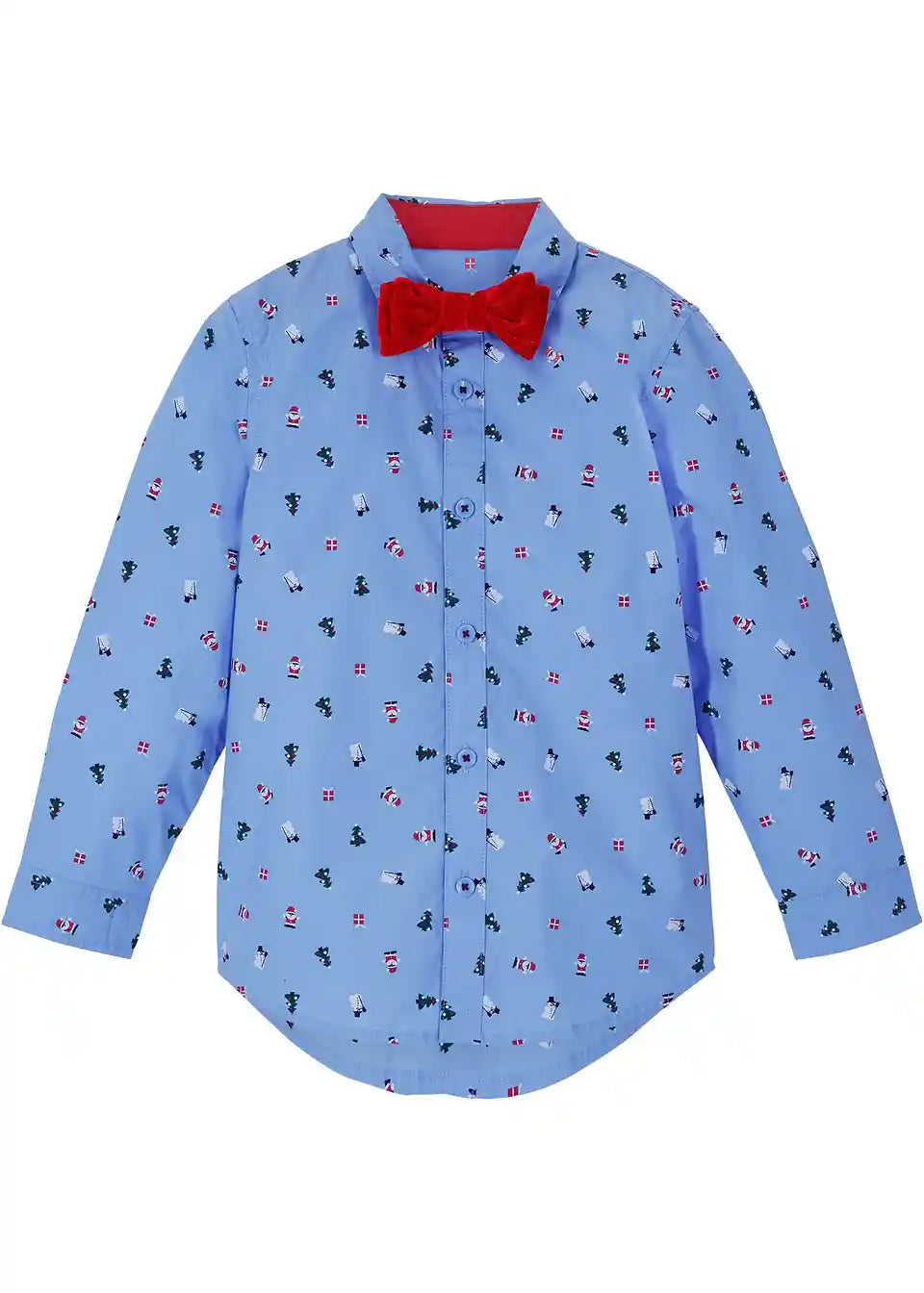 Košulja s dugim rukavima, leptir mašnom i božićnim motivom za dječake