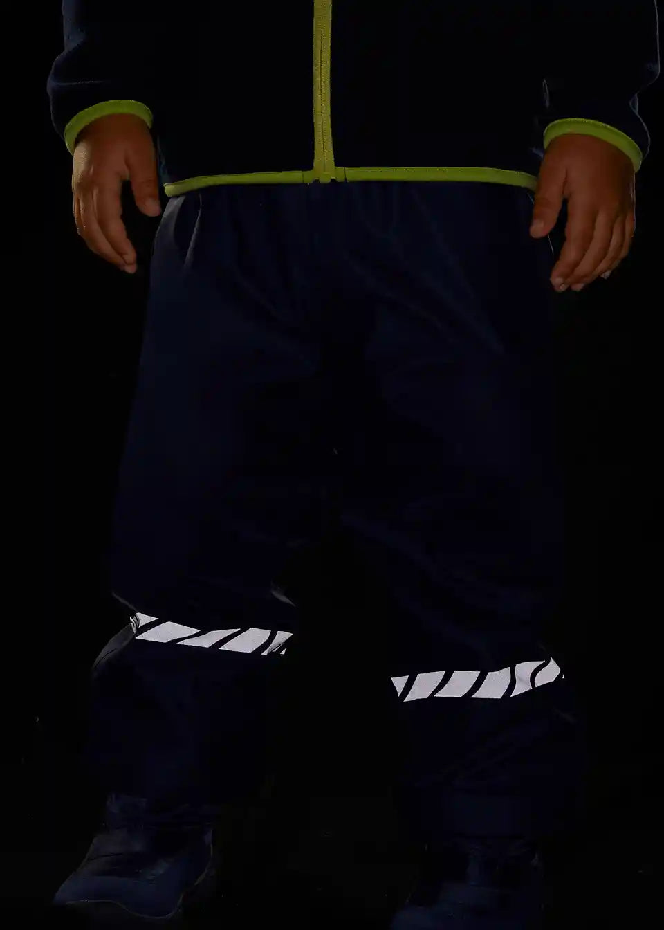 Vodootporne kišne i blatne hlače s reflektorima na nogavicama. Unutrašnjost Termo kišnih hlača obložena je mekanim flisom. Podesive elastične trake za stopala omogućuju savršeno prianjanje. Završetak nogavica s gumicom. Zahvaljujući zavarenim šavovima, gornji materijal podnosi tlak vode do 3.000 mm.