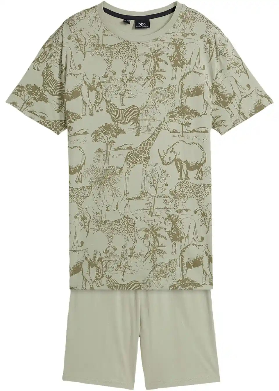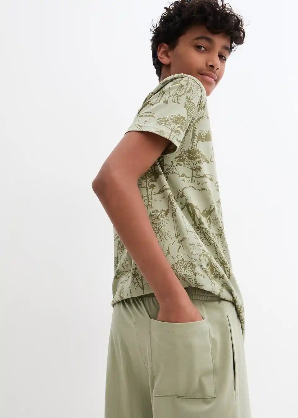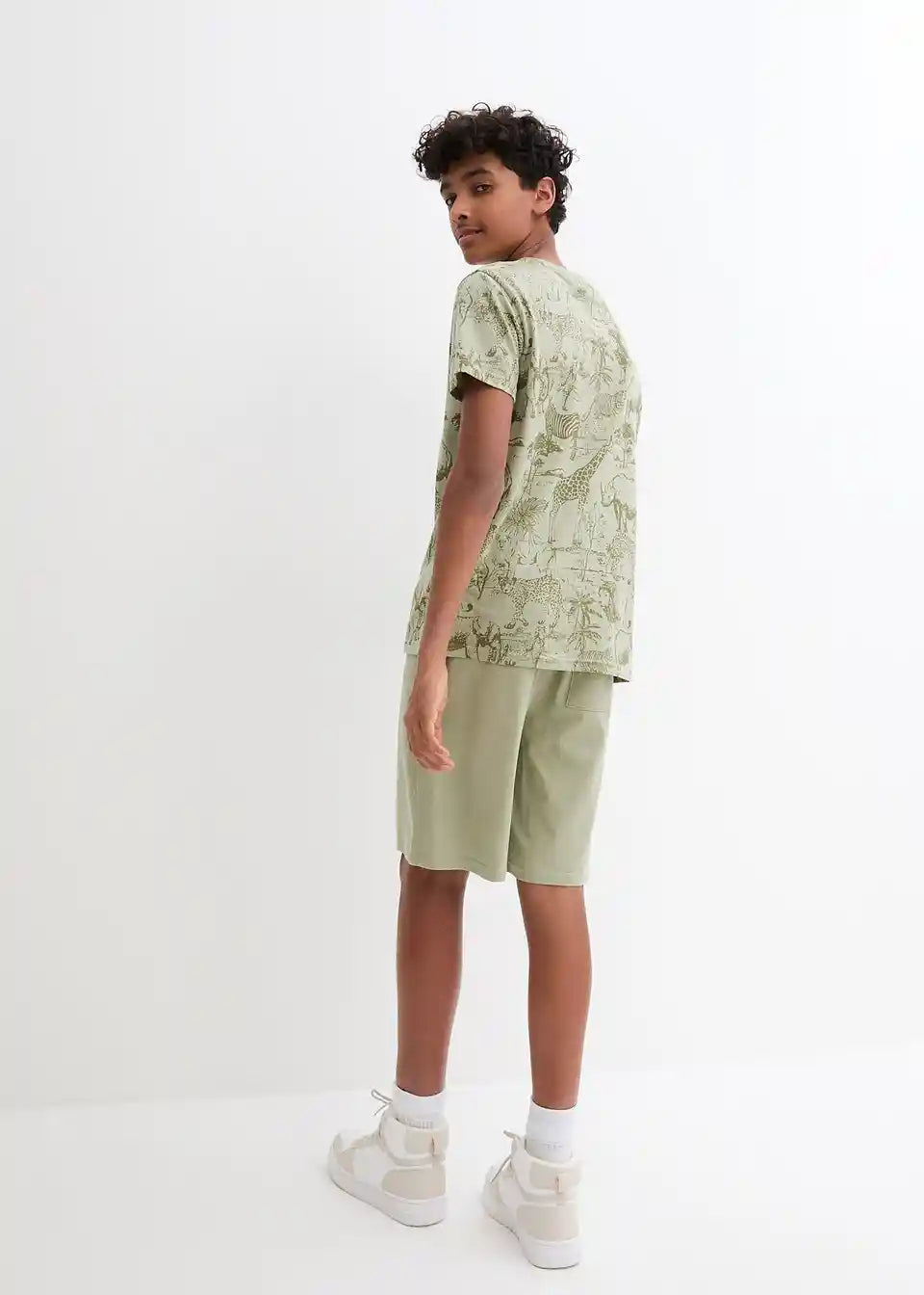 Trendi set koji se sastoji od gornjeg i donjeg dijela s T-Shirtom s potpunim printom i jednobojnim bermudama