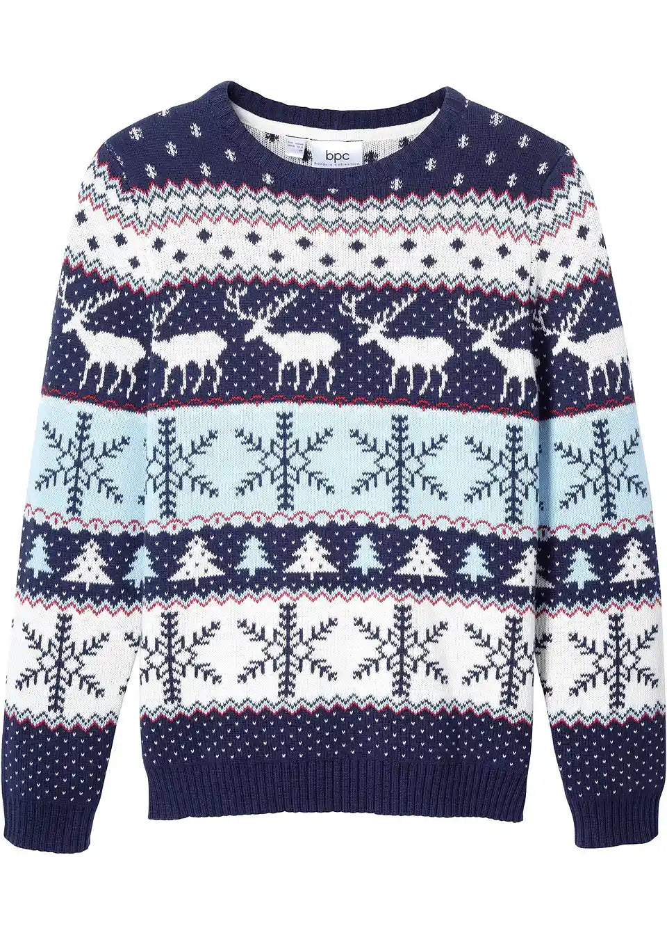 Prekrasna božićna vesta s velikim uzorkom za dječake. Pleteni pulover savršen je za hladnije dane i ističe se ugodnom kvalitetom pamuka i rebrastim rubovima koji osiguravaju optimalnu udobnost nošenja. Must-have za uvod u božićno vrijeme!
