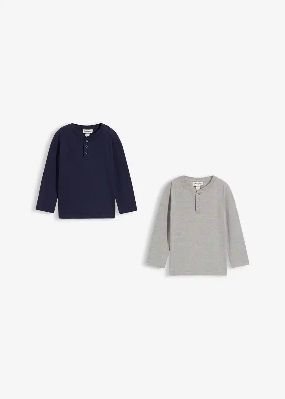 Henley majica s okruglim izrezom s gumbima i dugim rukavima s organskim pamukom (2 komada)