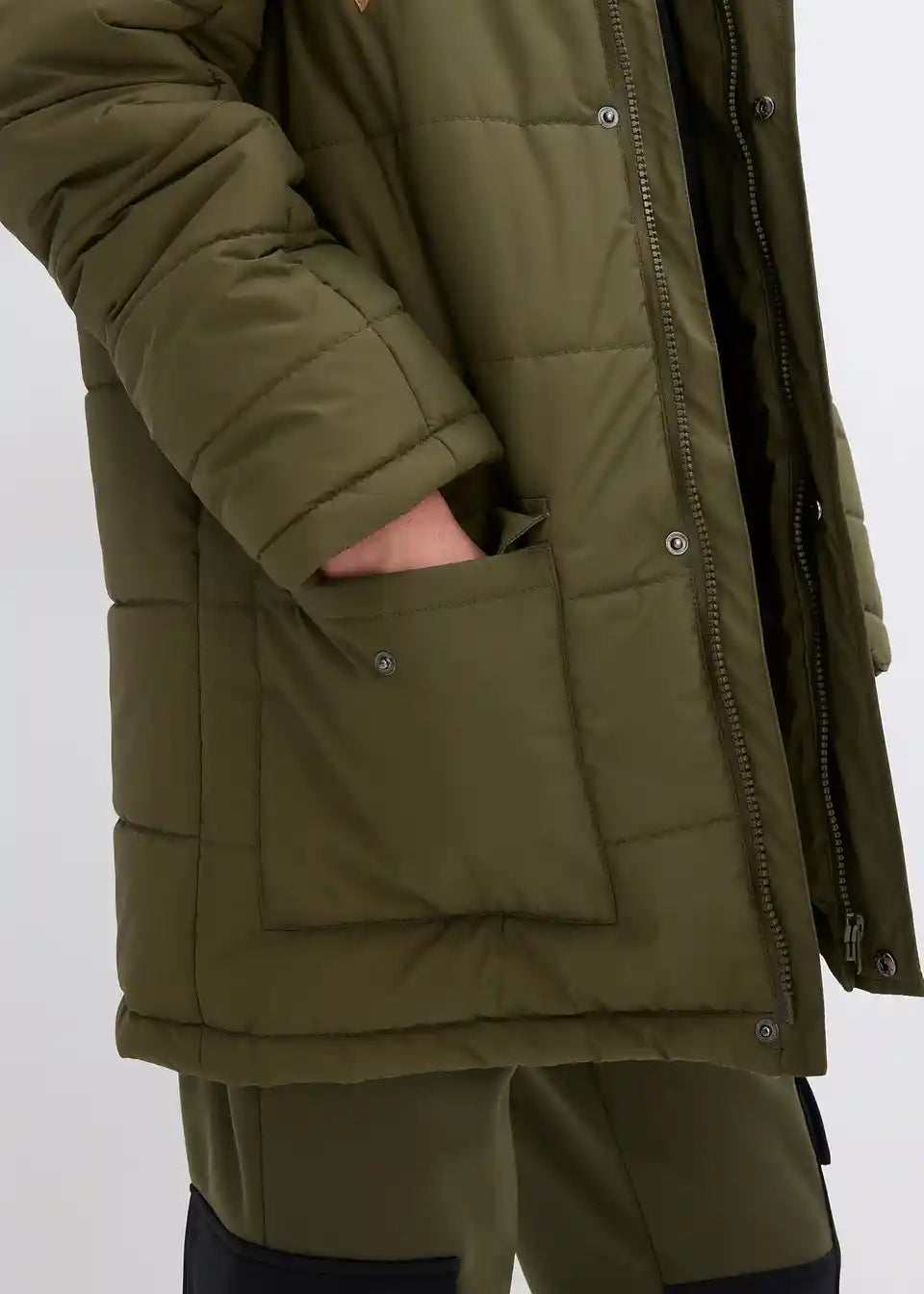 Materijal:gornji materijal: 55% poliester, 45% poliester (reciklirani), podstava, vatirana podstava i imitacija krzna: 100% poliester