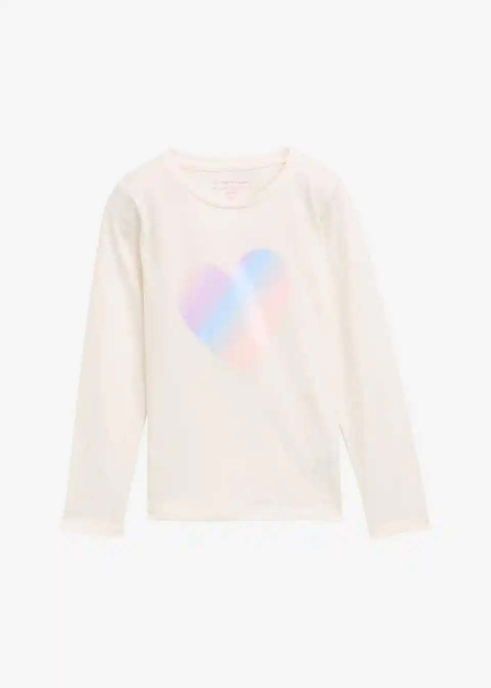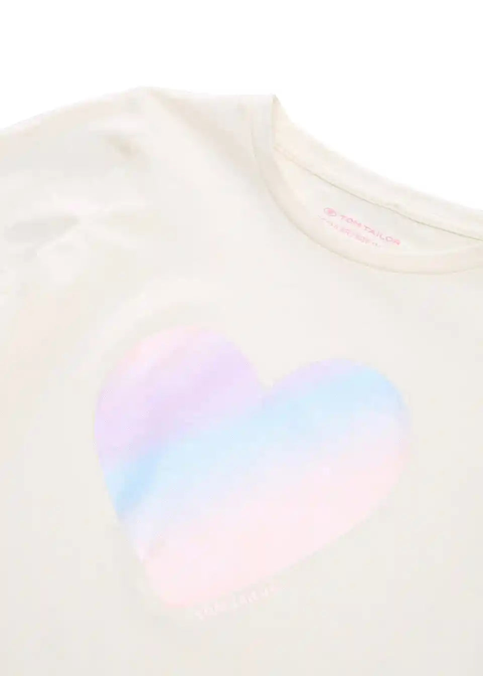 Tom Tailor majica dugih rukava s sjajnim folija printom u obliku srca na prednjoj strani. Izrađena od single-jersey pamuka
