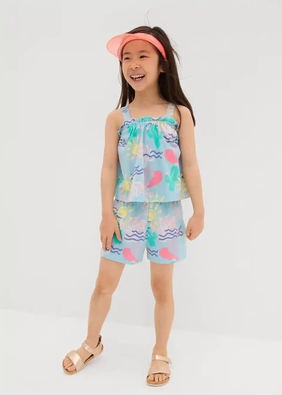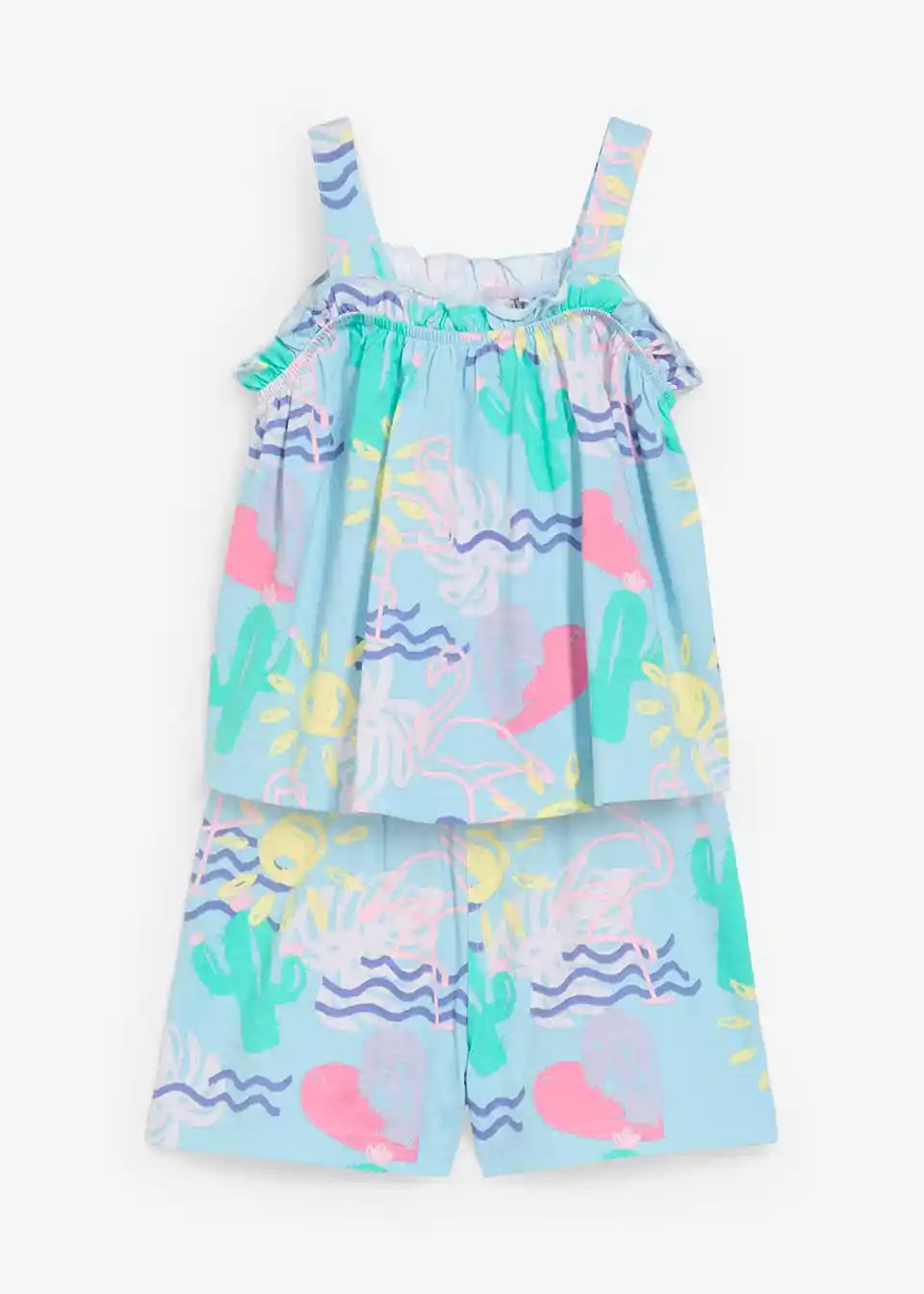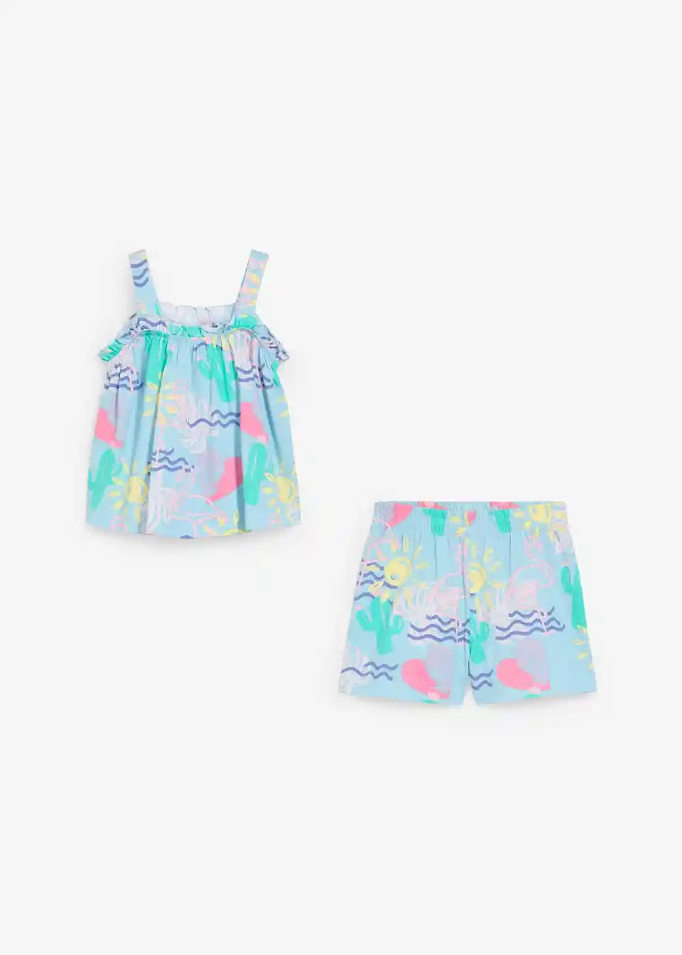 Praktičan komplet za djevojčice koji se sastoji od topa i kratkih hlača sa slatkim printom