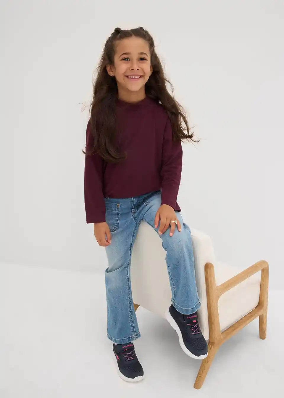 Bezvremenska majica s dugim rukavima za djevojčice s kratkom stojećom kragnom u praktičnom duplom pakiranju