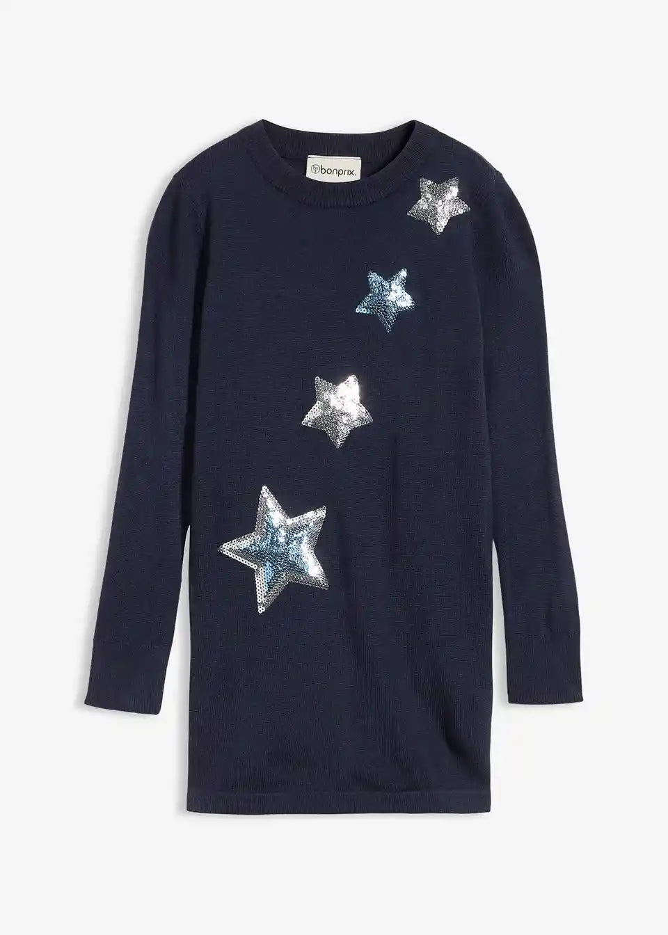 S ovim modernim pletenim puloverom s PAILETAMA djevojčice su moderno odjevene. Dugi pulover oduševljava velikim aplikacijama zvijezda od šarenih PAILETA na prednjoj strani. Izrađen je s finim rebrastim rubovima i ležernog je kroja. Lijepi pulover s okruglim izrezom marke bpc može se nositi u raznim prilikama i izvrsno se kombinira s trapericama ili suknjama.