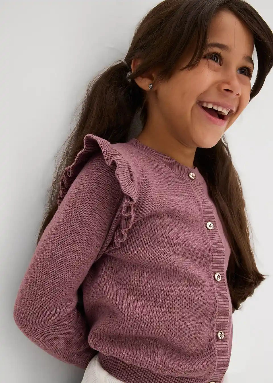 Razigrana fina pletena jakna za djevojčice s dekorativnim volanima