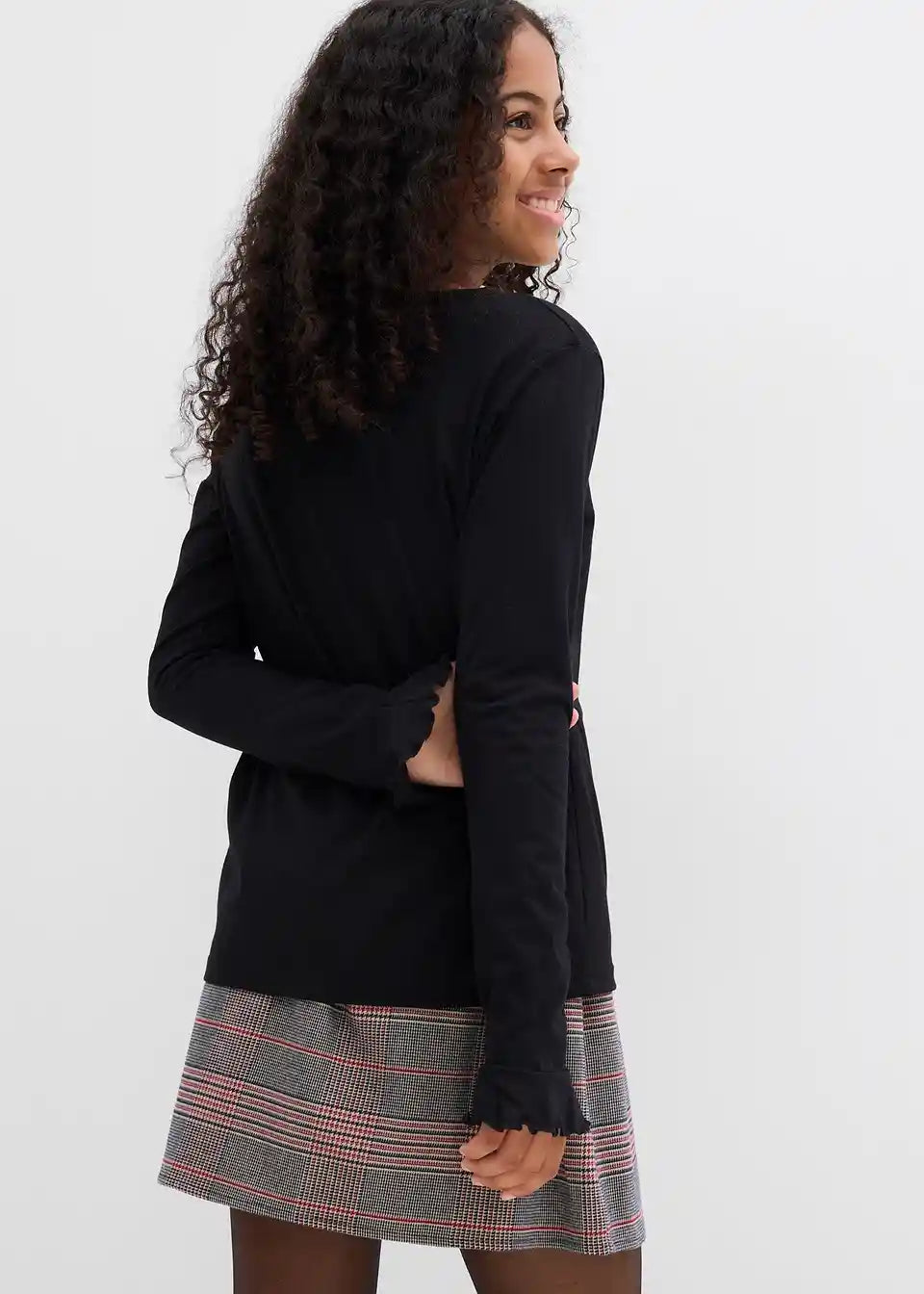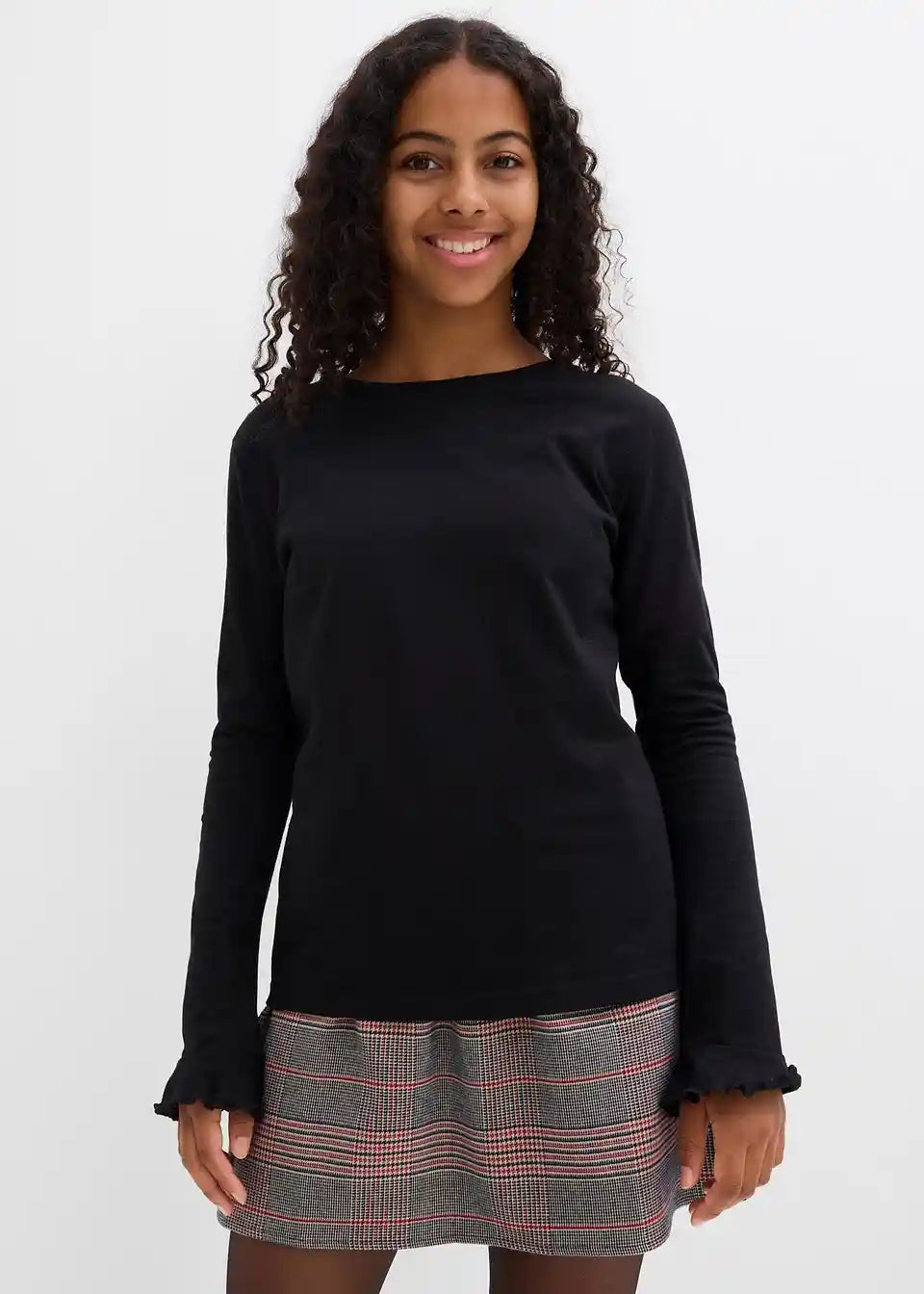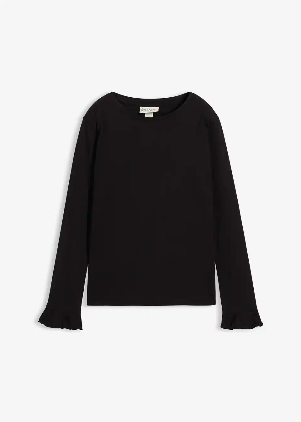 Majica s dugim rukavima s volan rukavima od elastične mješavine organskog pamuka za djevojčice