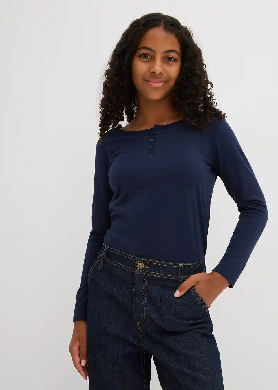 Udobna majica s dugim rukavima i prednjom lajsnom s gumbima u praktičnom dvostrukom pakiranju