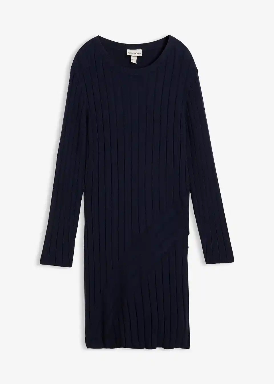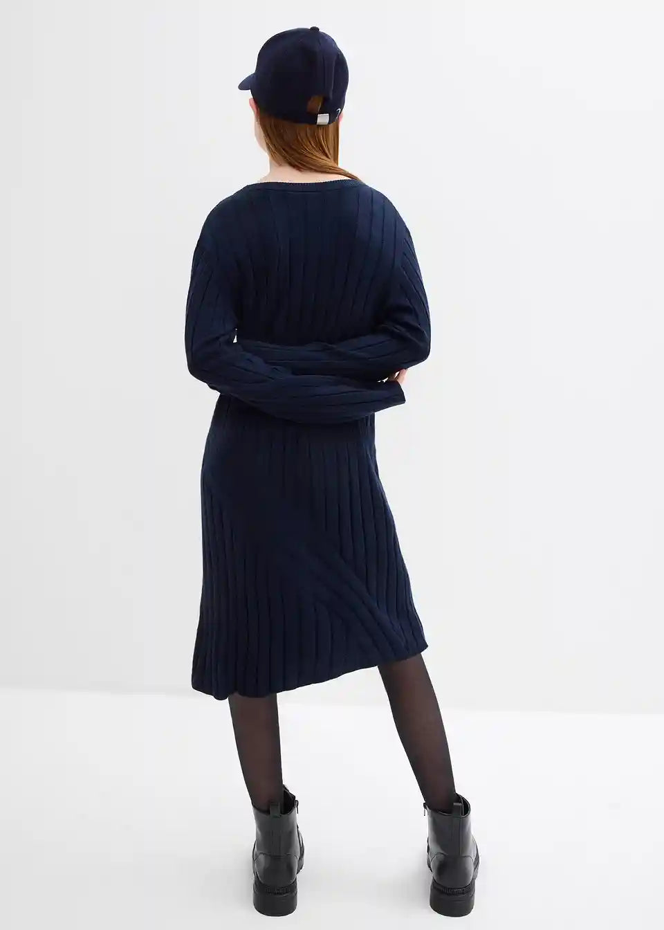 Ova prekrasna pletena haljina spaja stil i udobnost! S visokim okruglim izrezom i dugim, ušivenim rukavima pruža udobno pristajanje. Kroj u obliku slova A osigurava laskavu siluetu, dok haljina završava iznad koljena. Rebrasti uzorak po cijeloj površini daje haljini posebnu teksturu i moderan izgled. Idealna je za svečane prigode ili ležerne izlete – jednostavno je odjenite i osjećajte se sjajno!