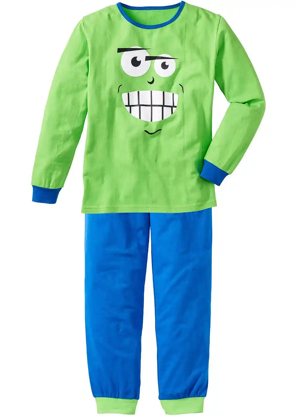 Duhovito lice odmah podiže raspoloženje dječacima u ovoj pidžami. Model iz bpc kolekcije sastoji se od majice dugih rukava i dugih hlača. Oba dijela dizajnirana su u ležernom kroju za puno slobode pokreta pri spavanju. Donji dio ima elastični pojas koji dodatno doprinosi vrhunskoj udobnosti. Kontrastni detalji poput manšeta na završecima rukava i nogavica te paspul na okruglom izrezu daju pidžami dodatnu svježinu.