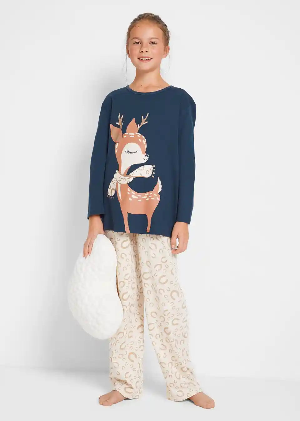 Predivna pidžama s velikim printom soba na prednjoj strani majice, kao i cjelokupnim printom na hlačama bež boje. Zahvaljujući elastičnom pojasu i kvaliteti organskog pamuka, ova pidžama je posebno ugodna za nošenje. Apsolutni must-have za ugodne zimske sate kod kuće.