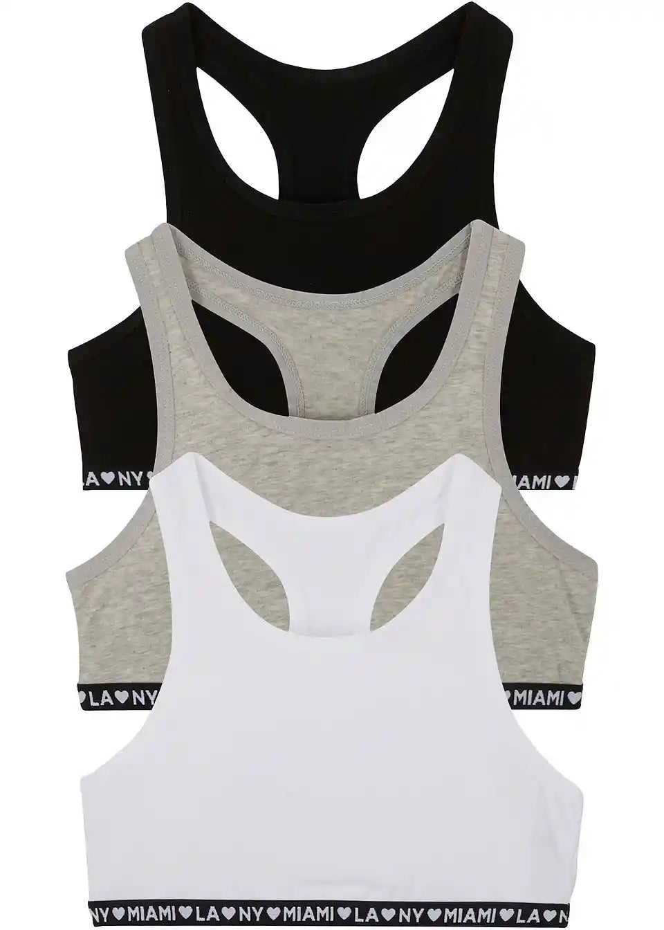 Ovaj moderni bralet u paketu od 3 komada je apsolutno cool osnovni komad u ormaru svake trendseterice. Široki elastični pojas ispod grudi ima cool detalj s natpisom. Zahvaljujući udjelu elastana i širokim naramenicama, bralet je posebno udoban.