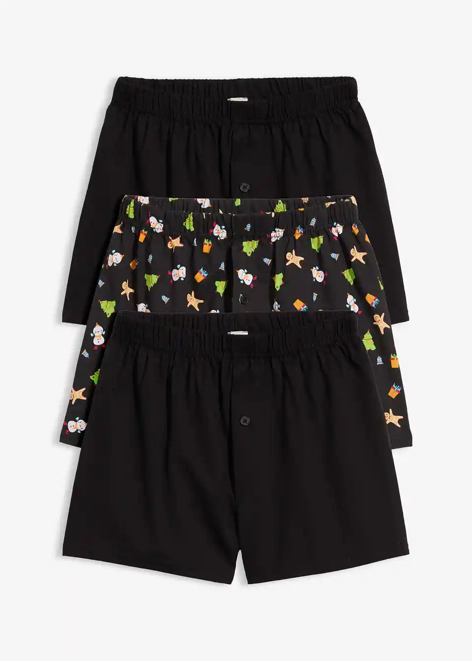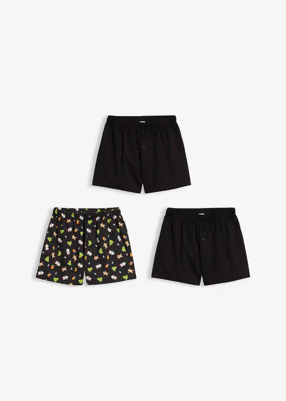 Udobne bokserice s božićnim motivom i jednobojne crne u praktičnom pakiranju od 3 komada.