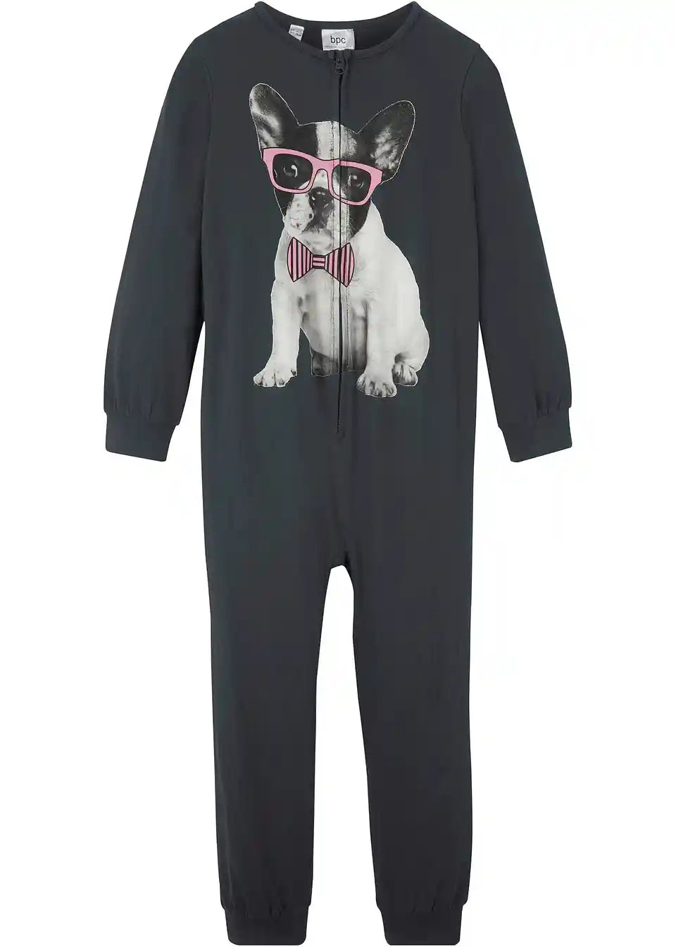 Apsolutni must-have za zimu - ovaj ležerni pidžama kombinezon sa slatkim printom psa. Široki porubi na rukavima i završecima nogavica, kao i mekana kvaliteta pamuka, osiguravaju udobnost pri nošenju. Patentni zatvarač s zaštitom za bradu sprijeda omogućuje lako oblačenje.