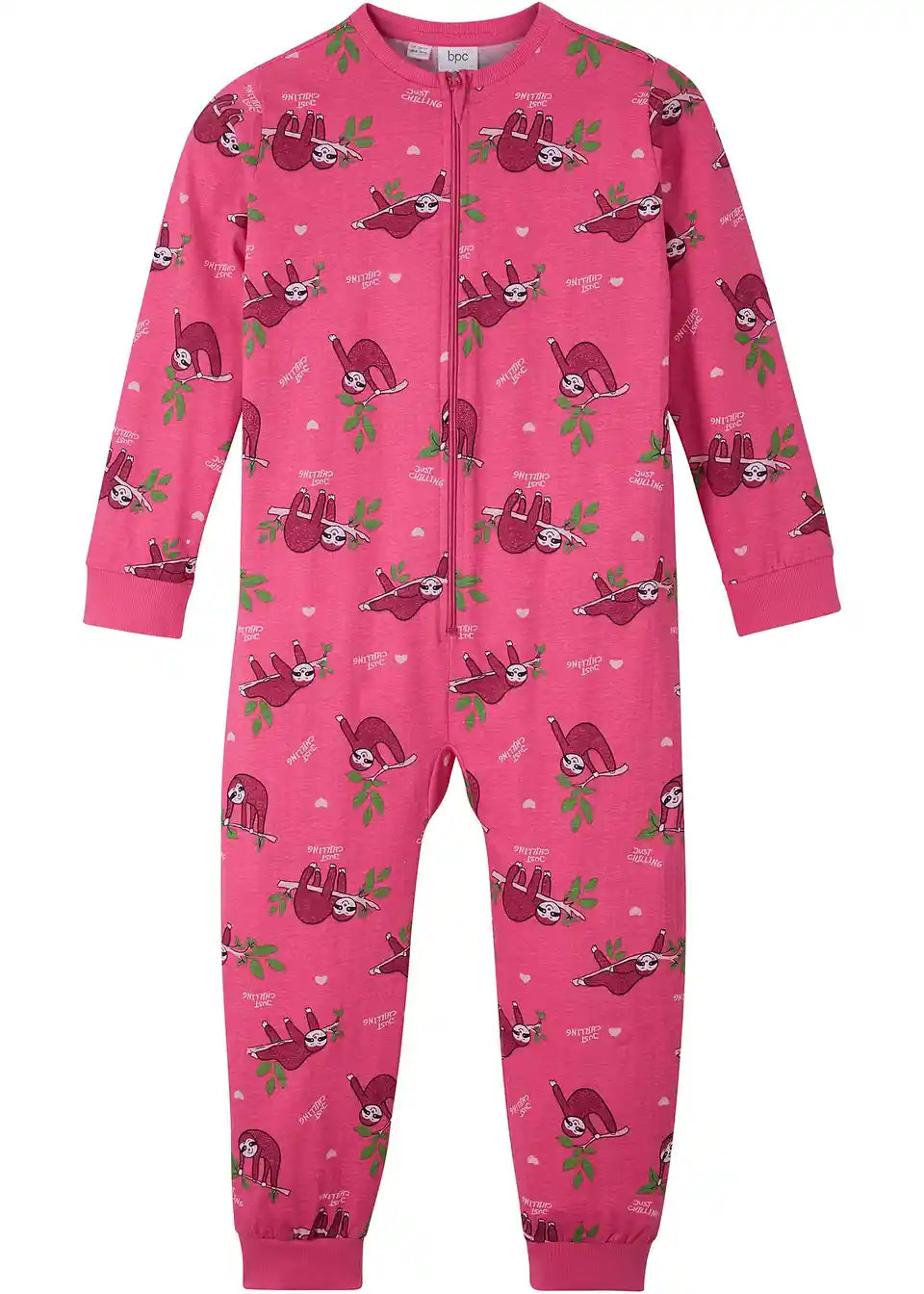 Šareni pidžama kombinezon s cool printom ljenjivaca. Izrez na vratu i rubovi opremljeni su mekanom gumicom za dodatnu udobnost. Na prednjoj strani nalazi se patentni zatvarač odgovarajuće boje s zaštitom za bradu za jednostavno oblačenje.