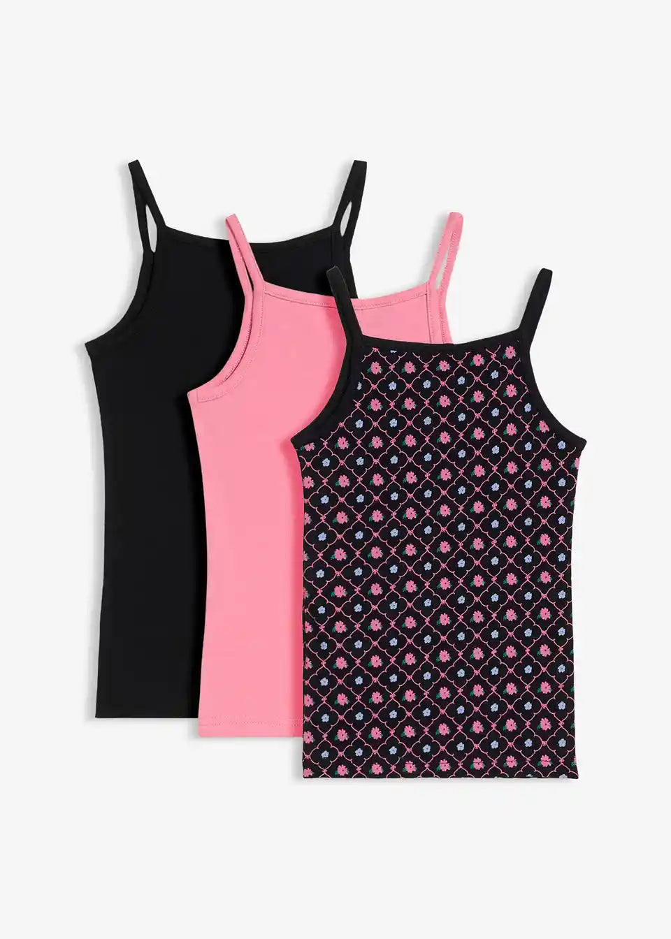 Dječji top od mekane bio pamuka s lijepim printom. Sa spaghetti naramenicama i u praktičnom pakiranju od 3 komada.