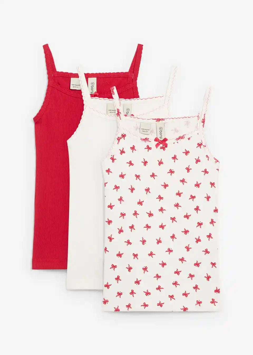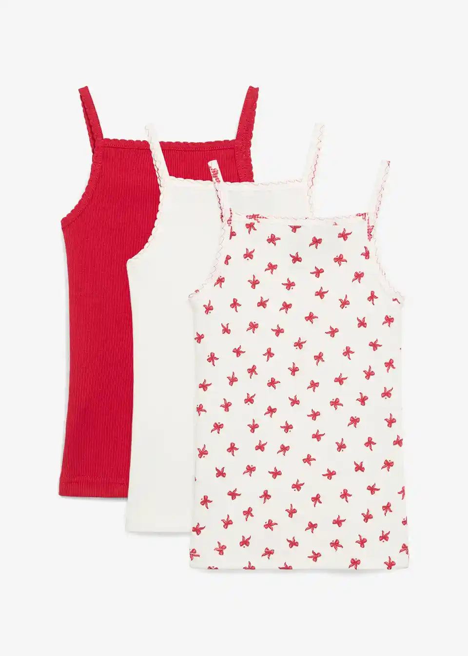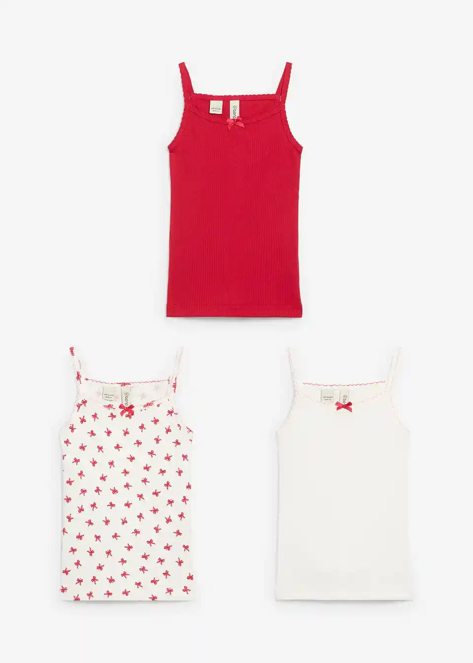 Razigrana potkošulja od mekane rebraste tkanine sa spaghetti naramenicama i malom mašnom sprijeda, u praktičnom pakiranju od 3 komada.