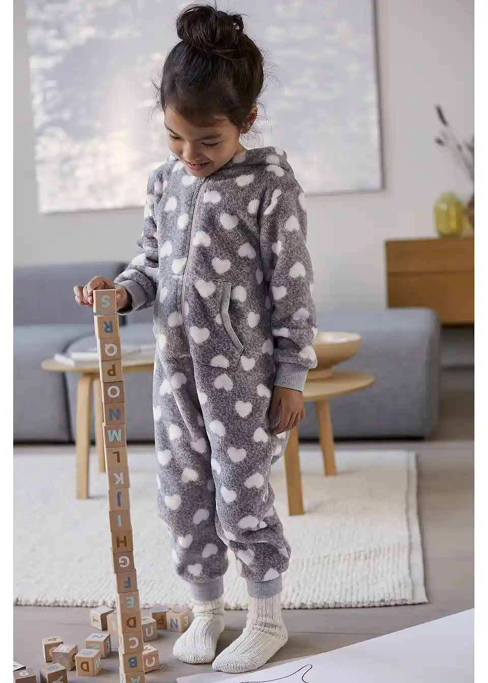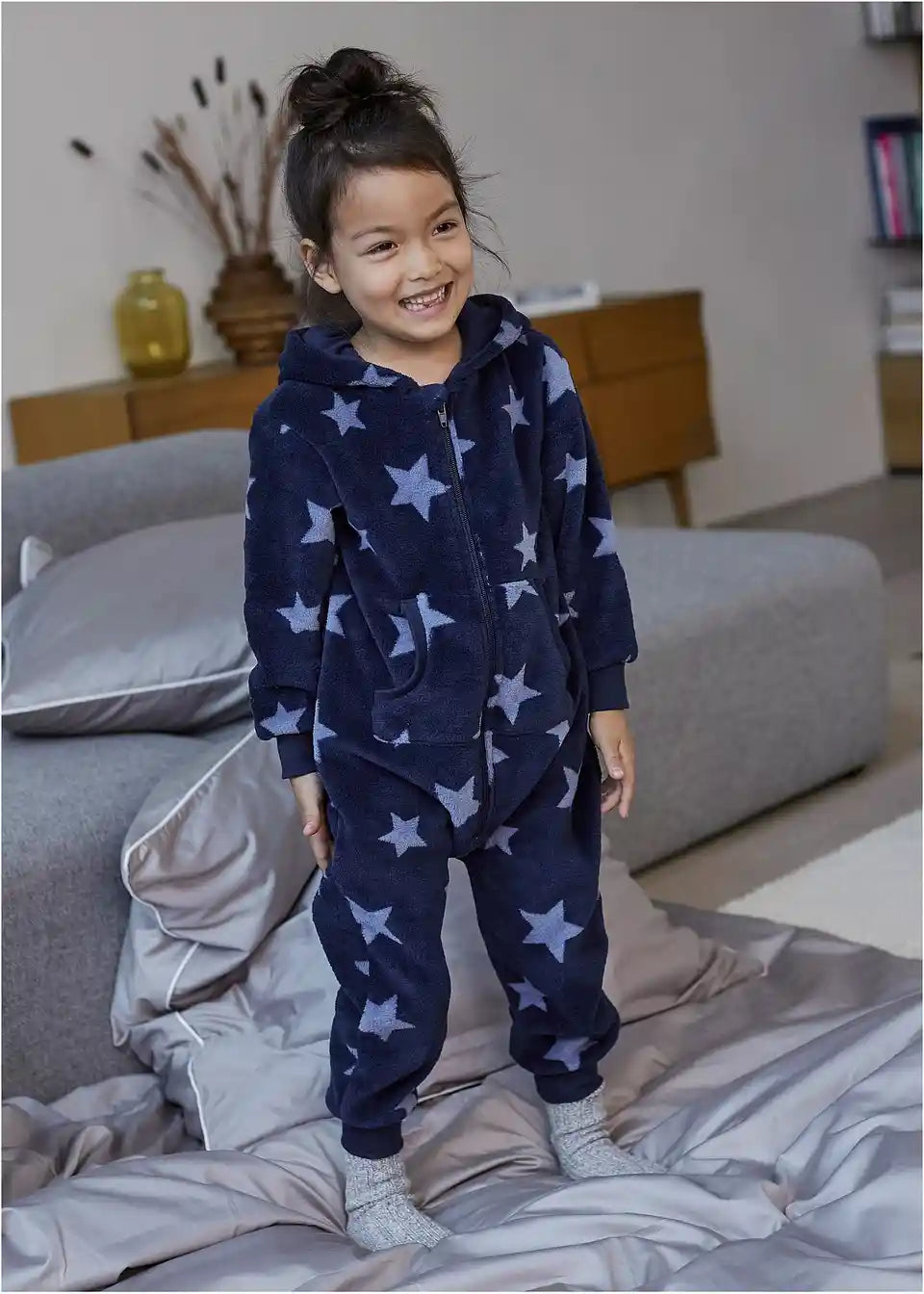 Ovaj mekani overall za dom impresionira svojim jedinstvenim faktorom udobnosti. Overall je dostupan u dvije boje, ukrašen sa simpatičnim uzorkom srca ili zvijezda u allover dizajnu. Praktičan džep klokan pruža prostor za pohranu, a patentni zatvarač s zaštitom za bradu osigurava lako oblačenje.
