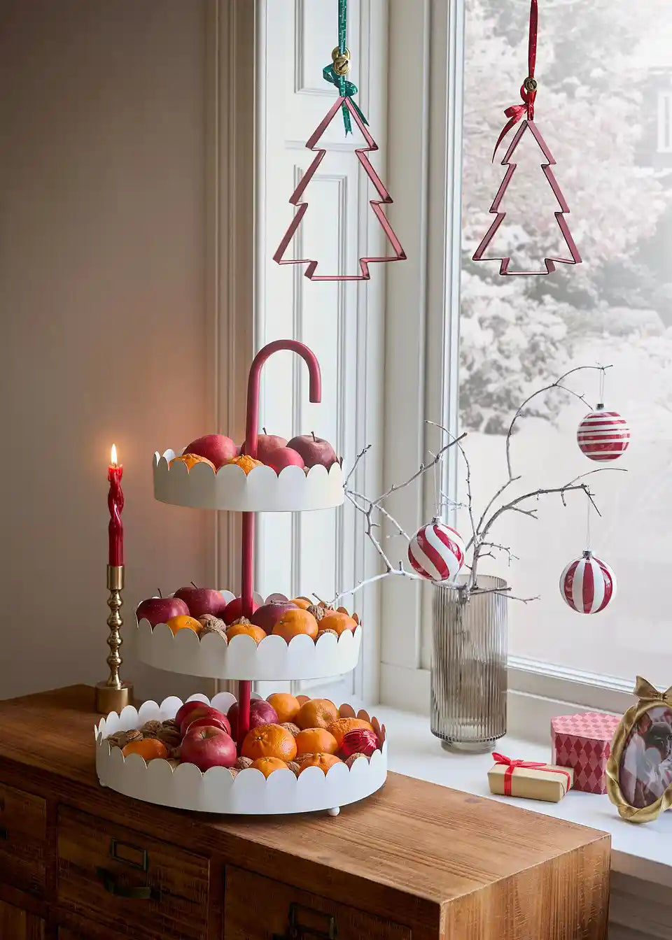 2-dijelni set dekorativnih borova modernog dizajna donosi blagdansko veselje u svaki dom. Izrađeni od čvrstog metala u privlačnoj crvenoj boji, borovi se ističu jasnim, geometrijskim oblikom i veselim trakama u zelenoj i crvenoj boji. Male zvončiće na mašnama daju borovima živahan dojam i naglašavaju božićnu atmosferu. Idealni za postavljanje na zidove, vrata ili na stolove, police ili kao dio blagdanskog aranžmana, ovi ukrasni borovi pružaju vesele naglaske i unose ugodnu atmosferu u božićno vrijeme. Bezvremenski ukrasni hit koji raduje i tijekom praznika i ostatka zime te naglašava ugodnost doma.