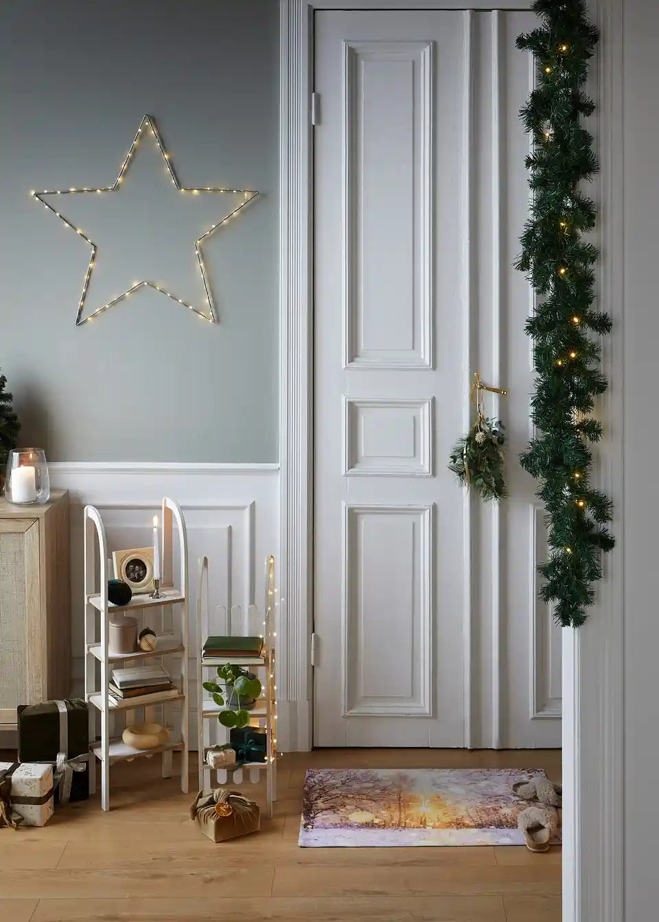 Božićno raspoloženje dolazi s LED-umjetnom borovom girlandom koja izgleda iznenađujuće stvarno. Bogata zelena boja ne smije nedostajati u nijednoj dobroj božićnoj dekoraciji. Girlanda je prikladna za upotrebu u zatvorenom prostoru. Tako se, primjerice, može svečano ukrasiti komoda ili ukrasiti ograda stepenica ovim božićnim dodatkom za dom. Zahvaljujući brojnim LED diodama, stvara se prekrasan svjetlosni efekt. Uključivanje i isključivanje vrlo je jednostavno zahvaljujući prekidaču. S LED-umjetnom borovom girlandom vaš dom može zablistati u svečanom duhu.