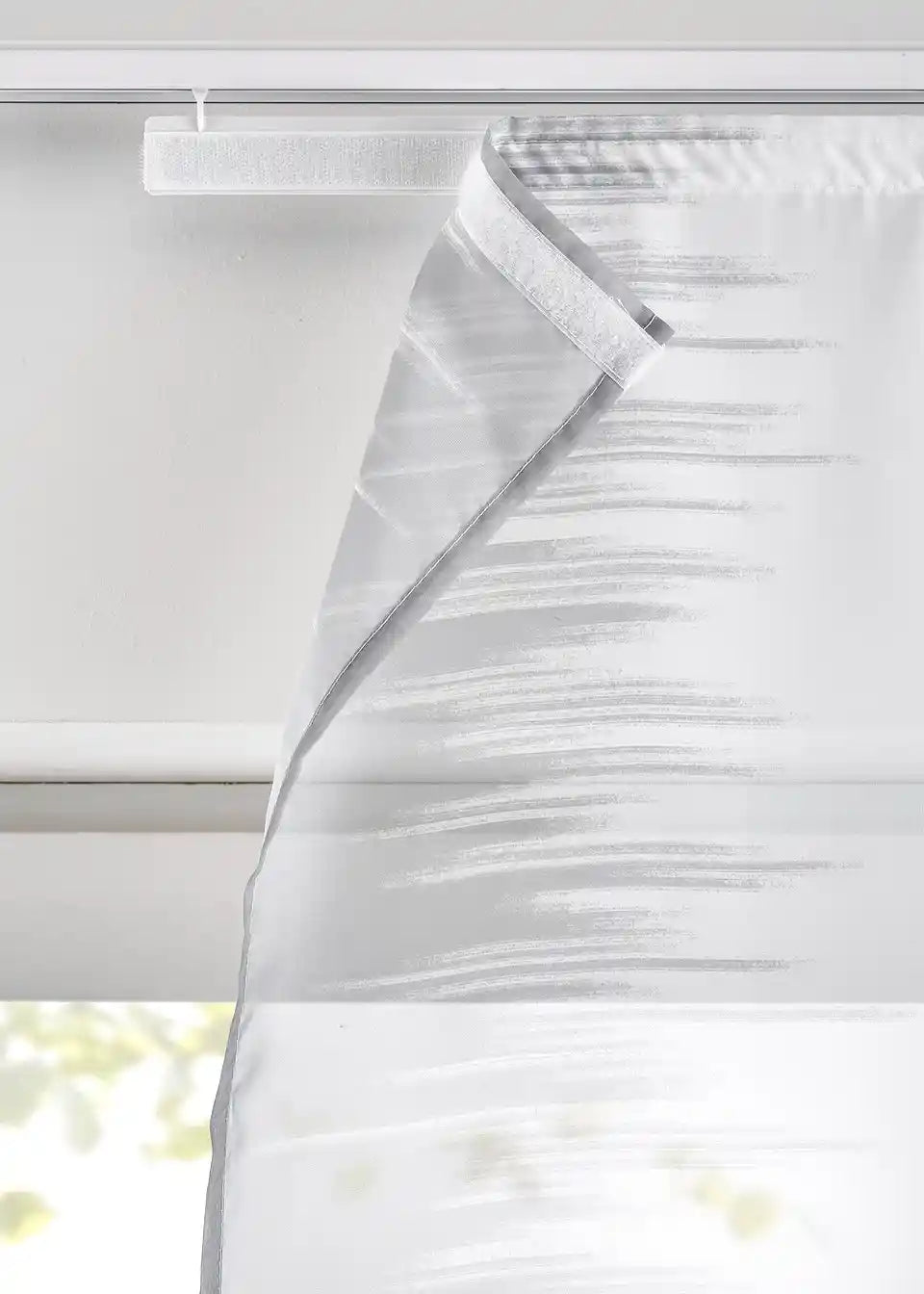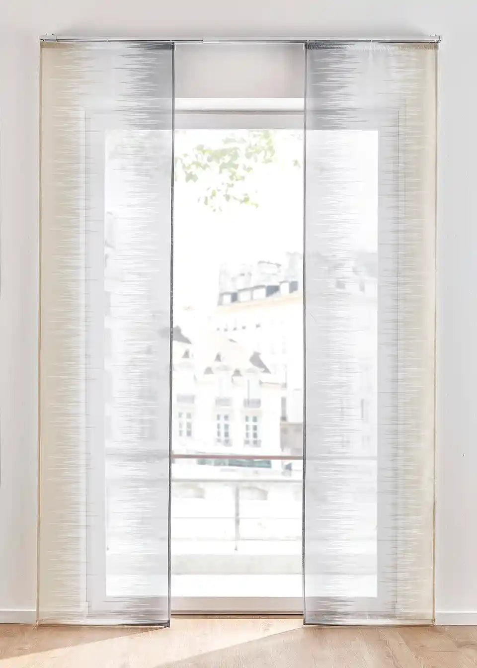 Klizna zavjesa impresionira svojim modernim, a istodobno suptilnim dizajnom. Zahvaljujući tome, može se kombinirati sa svim komadima namještaja. Isporuka uključuje dvije klizne zavjese s dodacima.