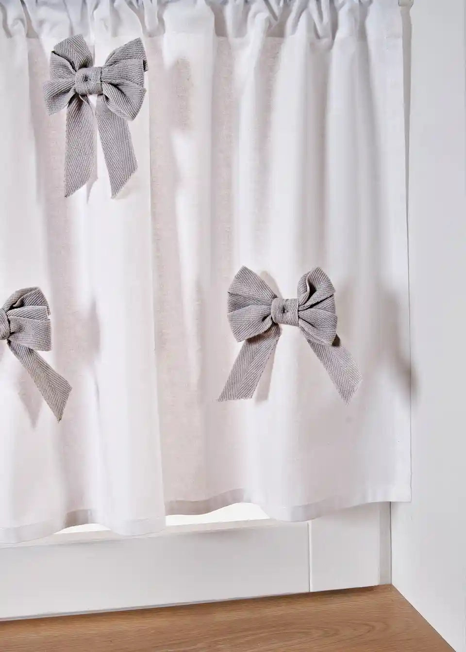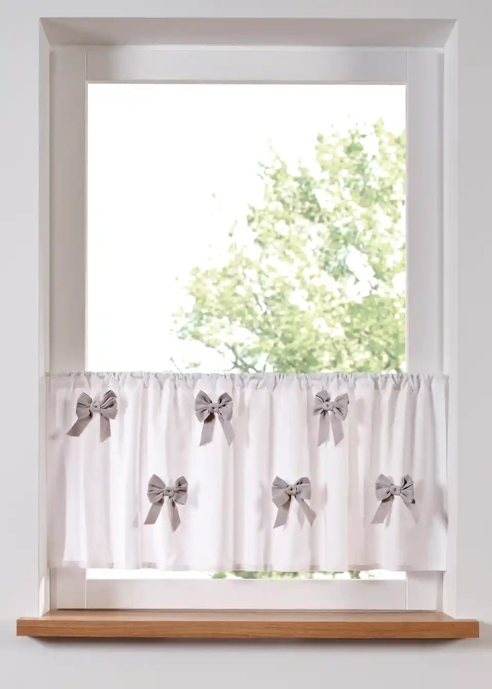 Kvalitetna vitrager zavjesa od čistog bio pamuka s našivenim mašnama. Tunelska traka omogućuje jednostavno postavljanje, a materijal lako čišćenje.