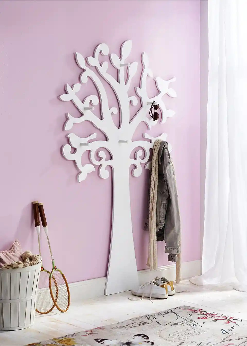 Štampani otirač s razigranim motivom leptira u vintage izgledu, poleđina presvučena vinilom, stoga protiv klizanja. Sve veličine se isporučuju presavijene.