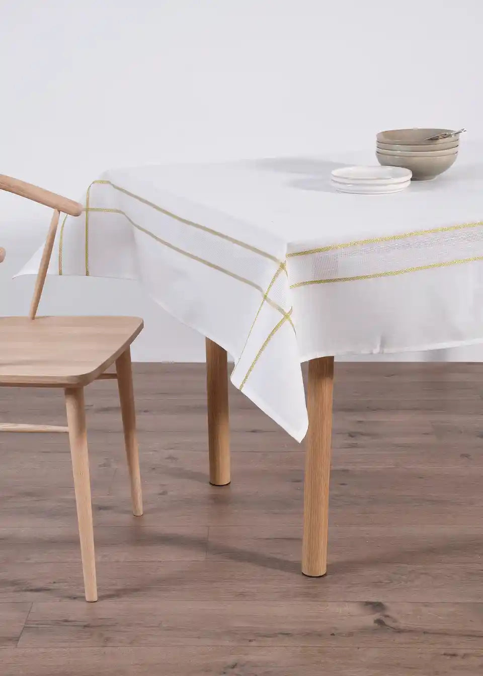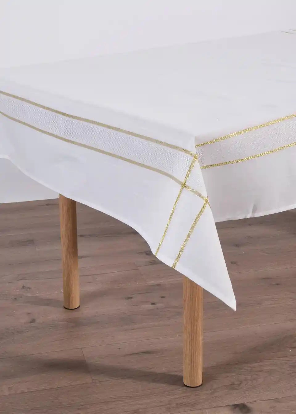 Elegantan stolnjak za tvoj svečani stol. Izrađen od kvalitetne tkanine i ukrašen finom zlatnom sjajnom pređom.